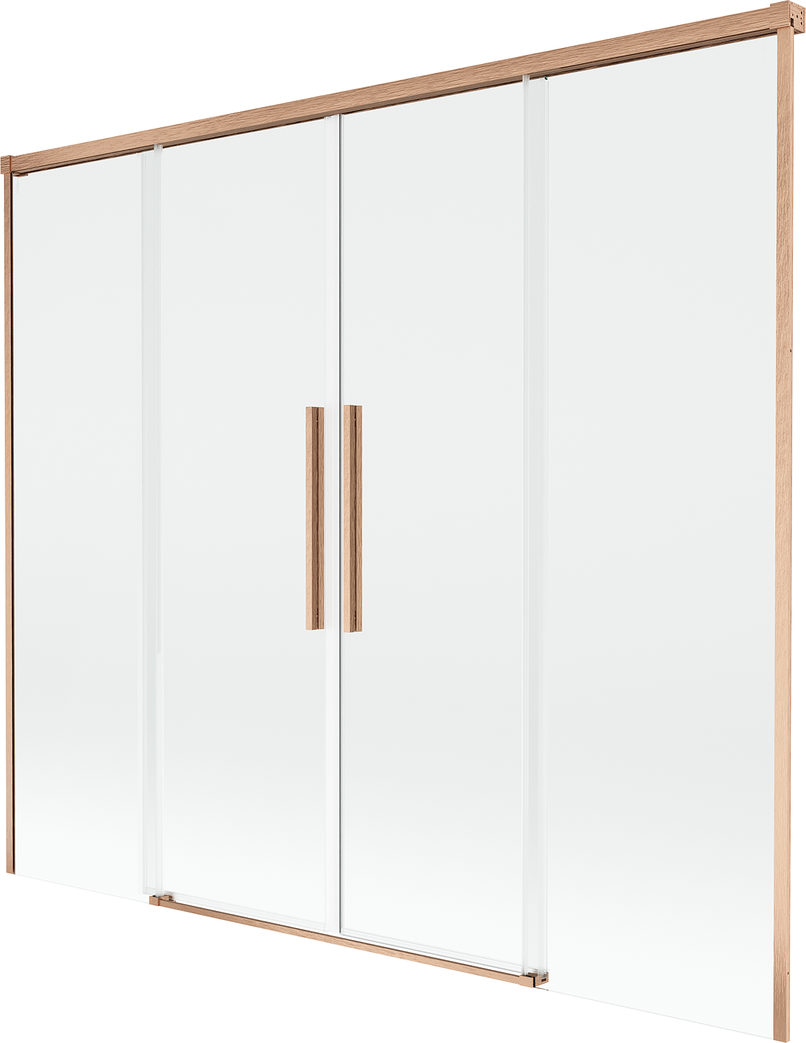 Mexen Rox dvoukřídlý posuvný koupelnový paraván 180 x 150 cm, průhledný, kartáčovaná měď - 8C9-180-002-65-00