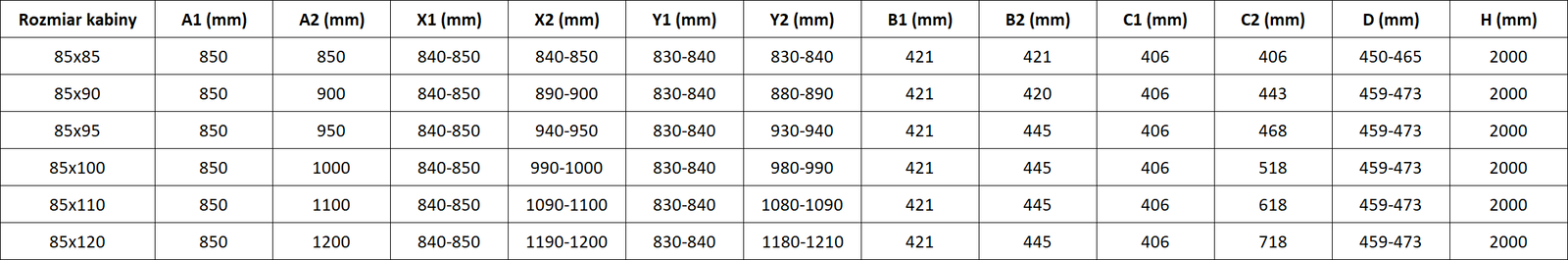 Velikost: 85x85 cm (pravé dveře 85 cm, levé dveře 85 cm)