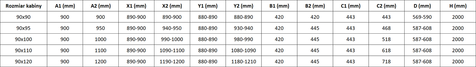 Sprchové kouty, dveře a stěny jsou standardně přizpůsobeny pro montáž na sprchové vaničky určitých rozměrů. Právě tyto rozměry jsou uvedeny v názvu nebo popisu výrobku. Je však třeba mít na paměti, že skutečné rozměry prvků se mohou mírně lišit od nominálních hodnot. V případě plánované instalace přímo na podlahu se doporučuje pečlivě zkontrolovat vnější rozměry a uspořádání prvků podle technického výkresu.