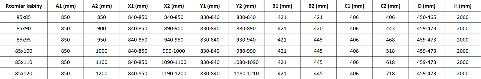 Sprchové kouty, dveře a stěny jsou standardně přizpůsobeny pro montáž na sprchové vaničky určitých rozměrů. Právě tyto rozměry jsou uvedeny v názvu nebo popisu výrobku. Je však třeba mít na paměti, že skutečné rozměry prvků se mohou mírně lišit od nominálních hodnot. V případě plánované instalace přímo na podlahu se doporučuje pečlivě zkontrolovat vnější rozměry a uspořádání prvků podle technického výkresu.