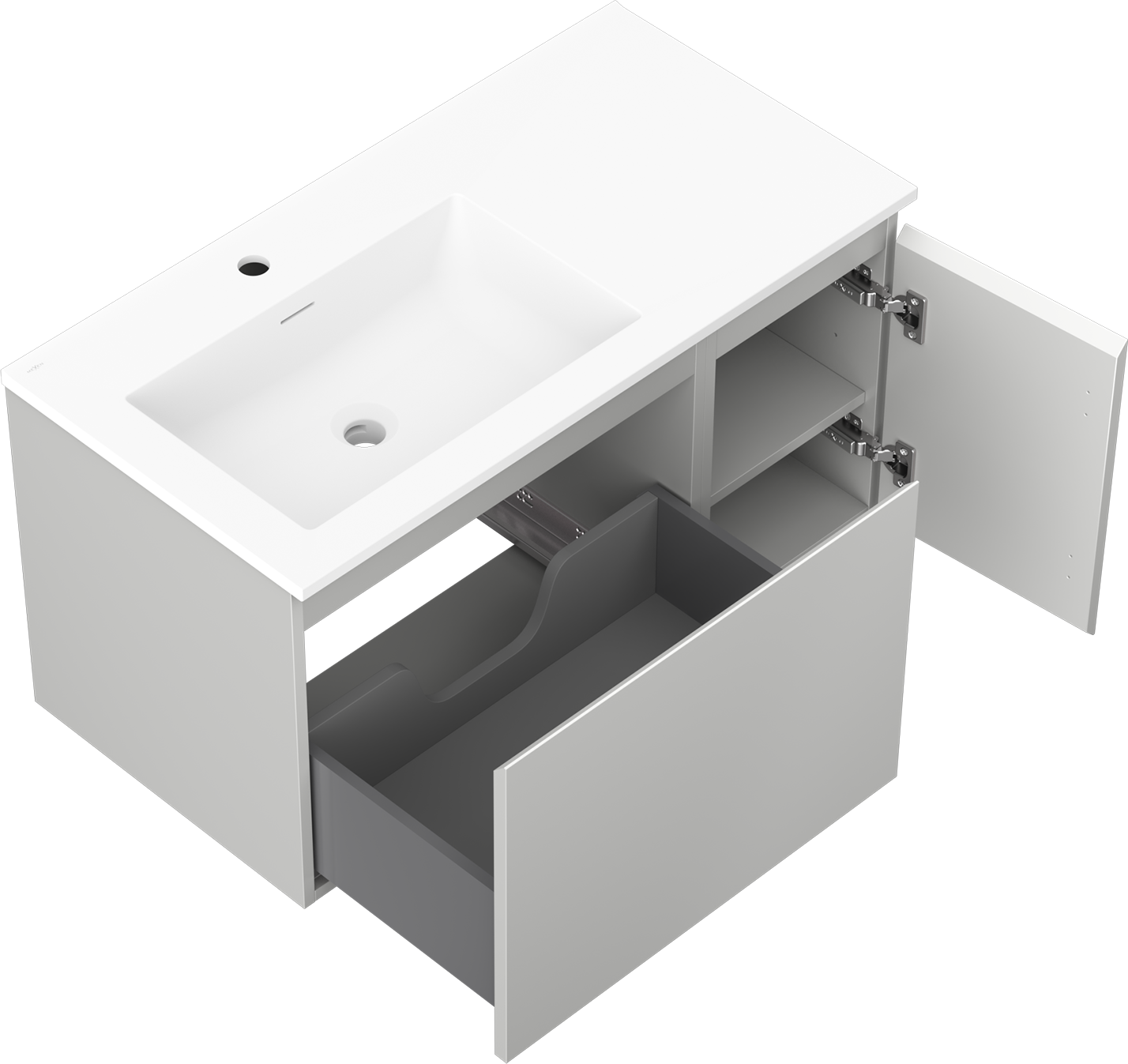 Výřez v zásuvce je navržen tak, aby pojmul sifon, který je nezbytný v instalacích umyvadlových. Díky tomu může být nábytek plně funkčně namontován, aniž by bylo nutné vzdát se prostoru v zásuvce ve prospěch instalace.