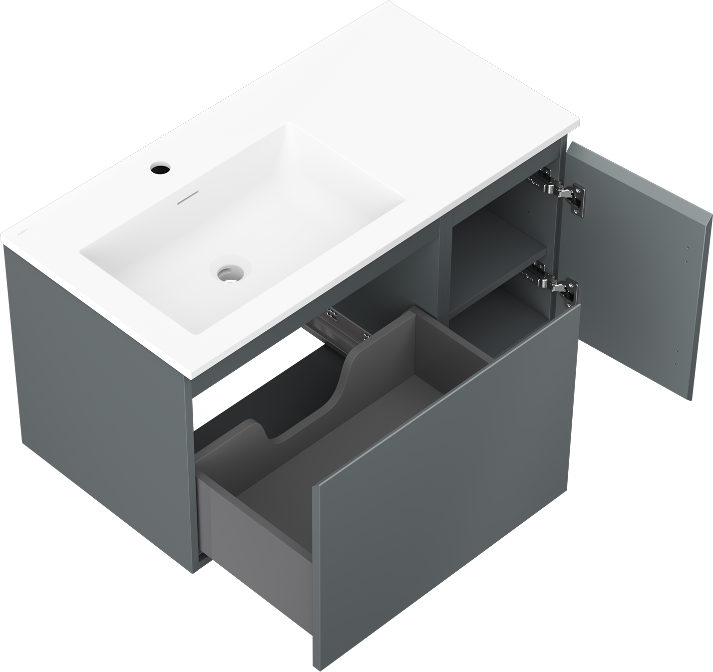 Mexen Orio koupelnová skříňka 90 cm s umyvadlem Otis levým, 1S, 1D, grafit mat/bílá mat - 91A13-09047-3-BBFF66-W18L01