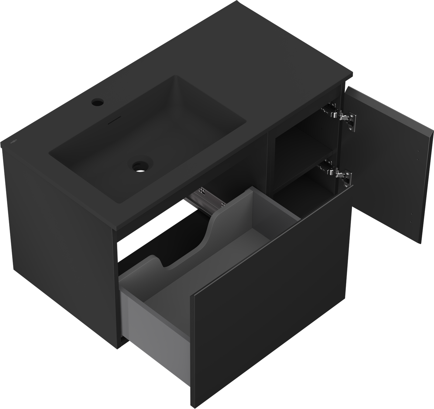 Mexen Orio koupelnová skříňka 90 cm s umyvadlem Otis vlevo, 1S, 1D, černá mat - 91A13-09047-3-BBFF71-W18L71