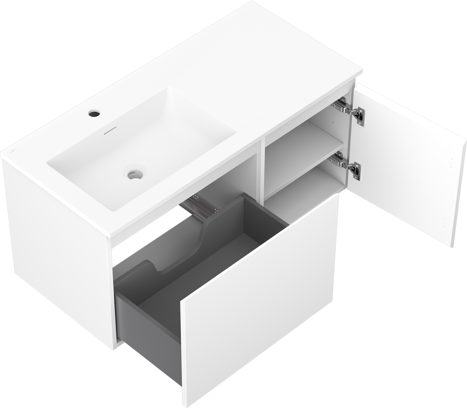 Mexen Orio koupelnová skříňka 100 cm s umyvadlem Otis levým, 1S, 1D, bílá mat - 91A13-10047-3-BBFF01-W18L01