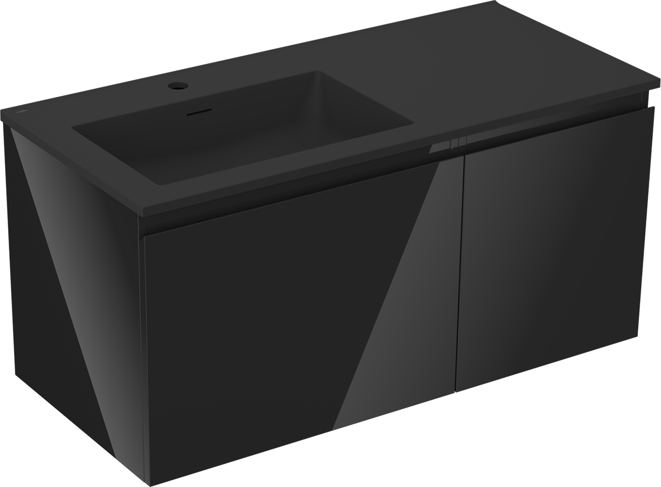 Mexen Orio koupelnová skříňka 100 cm s umyvadlem Otis levým, 1S, 1D, černý lesk/černý mat - 91A13-10047-3-BBFF70-W18L71