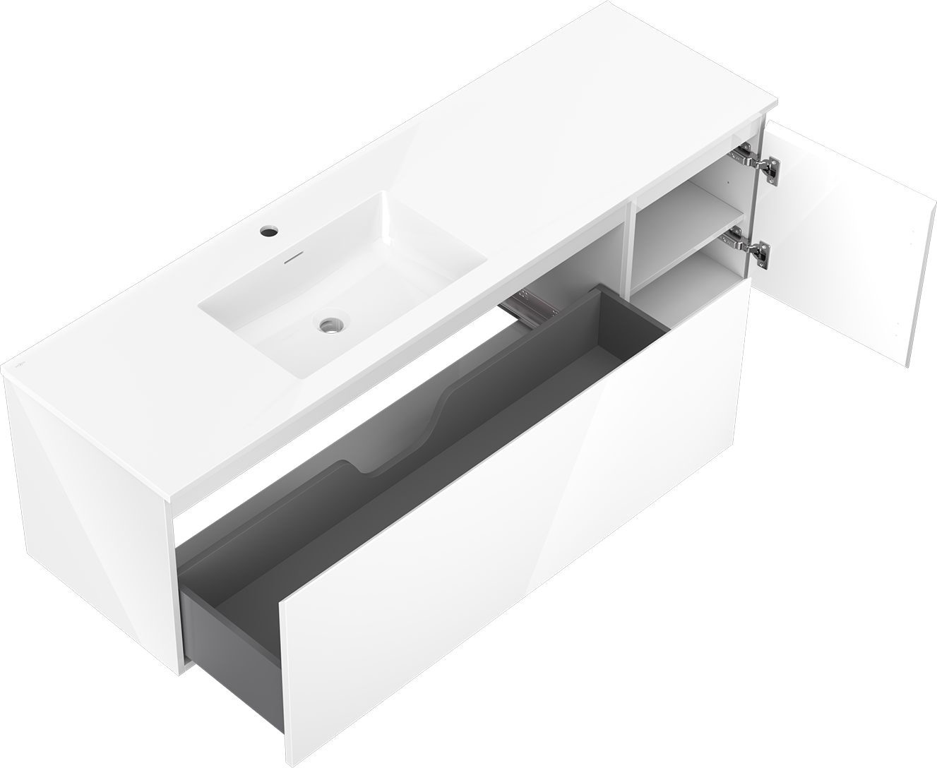 Mexen Orio koupelnová skříňka 160 cm s umyvadlem Otis levá, 1S, 1D, bílý lesk - 91A13-16047-3-BBFF00-W18L00