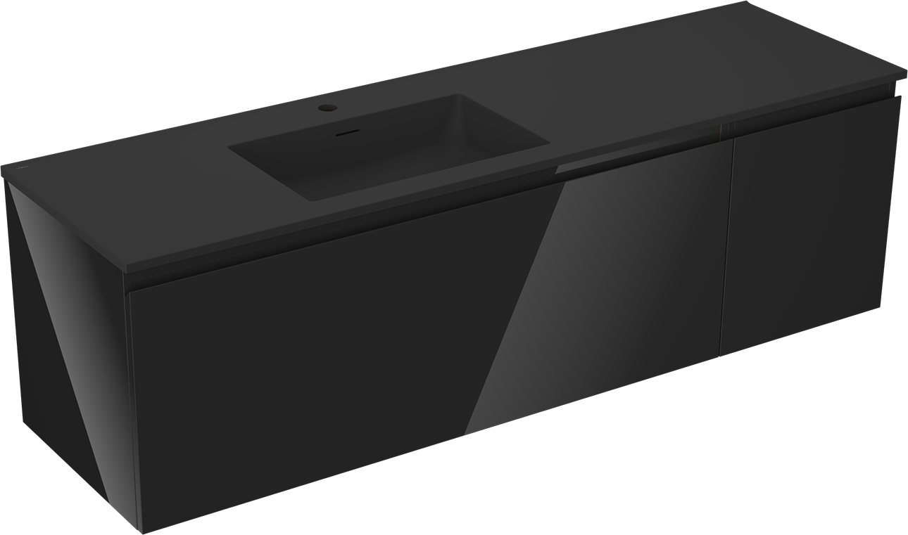 Mexen Orio koupelnová skříňka 160 cm s umyvadlem Otis vlevo, 1S, 1D, černý lesk/černý mat - 91A13-16047-3-BBFF70-W18L71