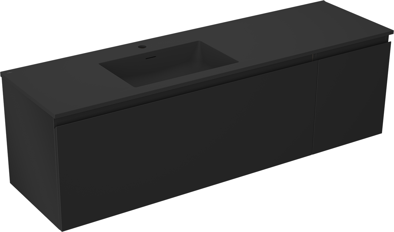 Mexen Orio koupelnová skříňka 160 cm s umyvadlem Otis vlevo, 1S, 1D, černá mat - 91A13-16047-3-BBFF71-W18L71