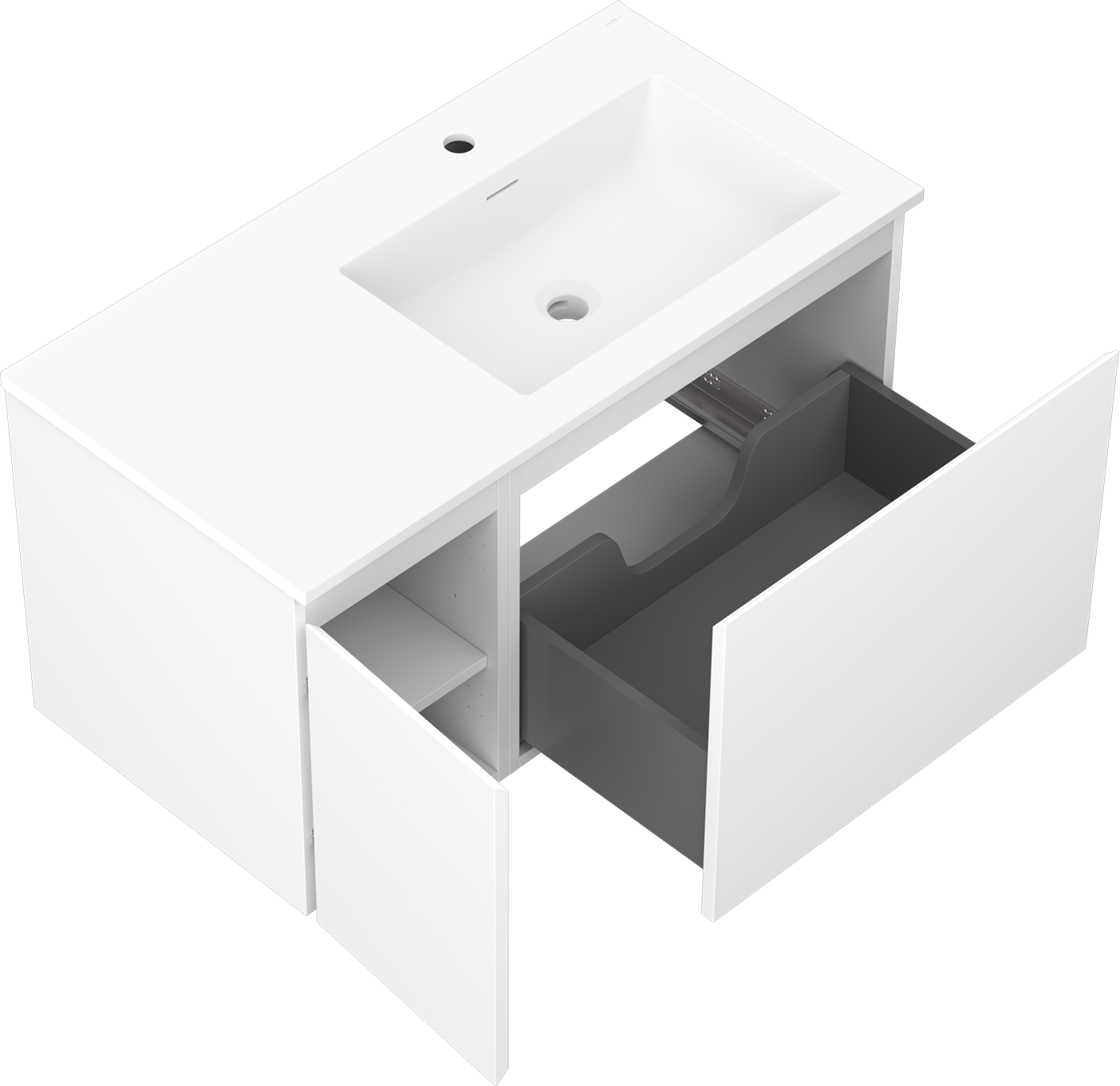 Výřez v zásuvce je navržen tak, aby pojmul sifon, který je nezbytný v instalacích umyvadlových. Díky tomu může být nábytek plně funkčně namontován, aniž by bylo nutné vzdát se prostoru v zásuvce ve prospěch instalace.
