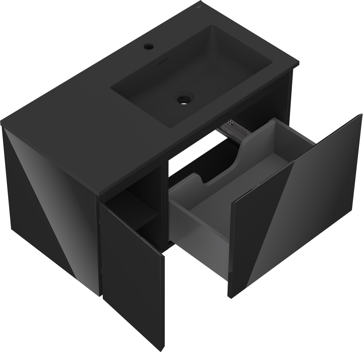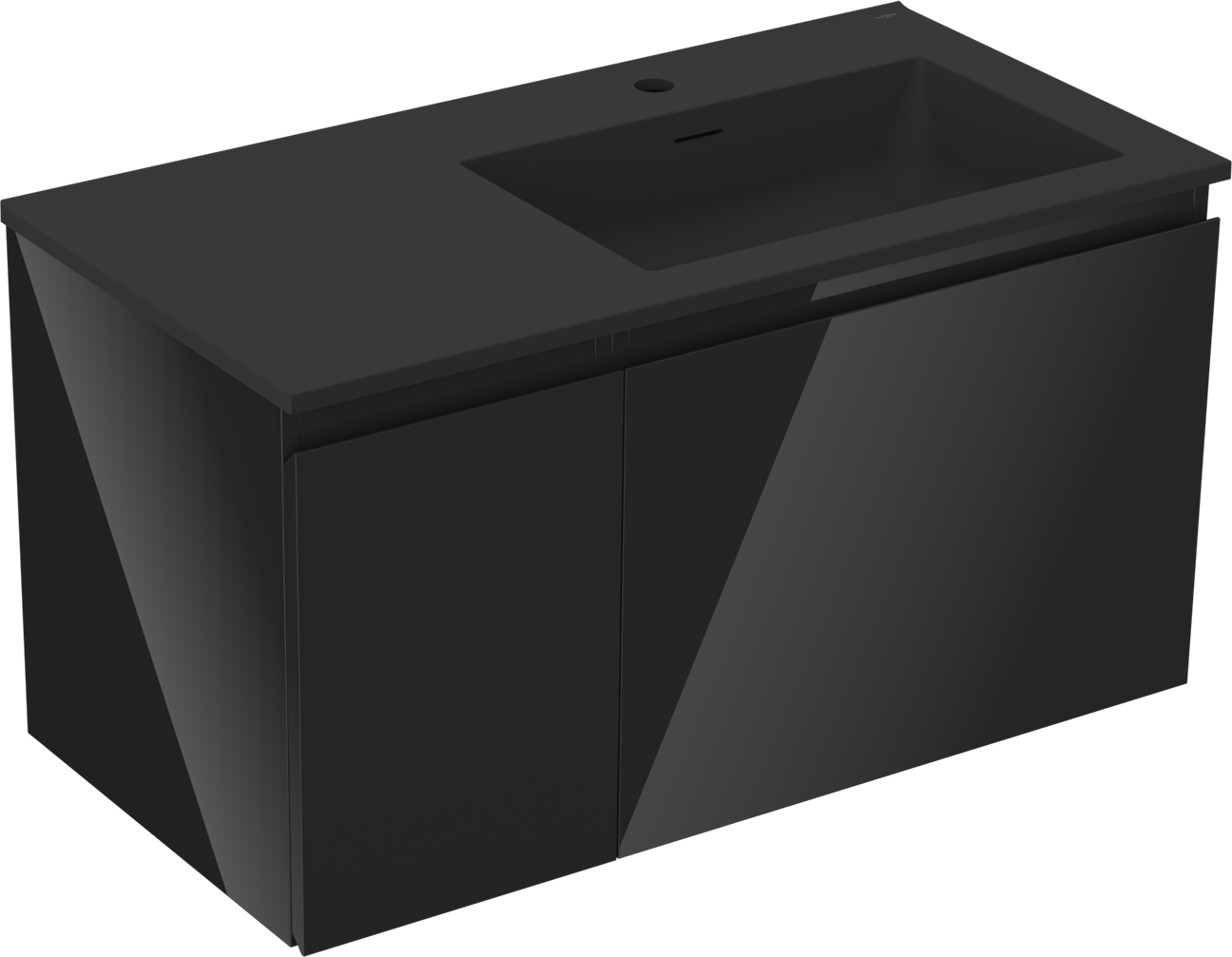 Mexen Orio koupelnová skříňka 90 cm s umyvadlem Otis pravá, 1S, 1D, černý lesk/černý mat - 91A13-09047-3-BBFF70-W18P71