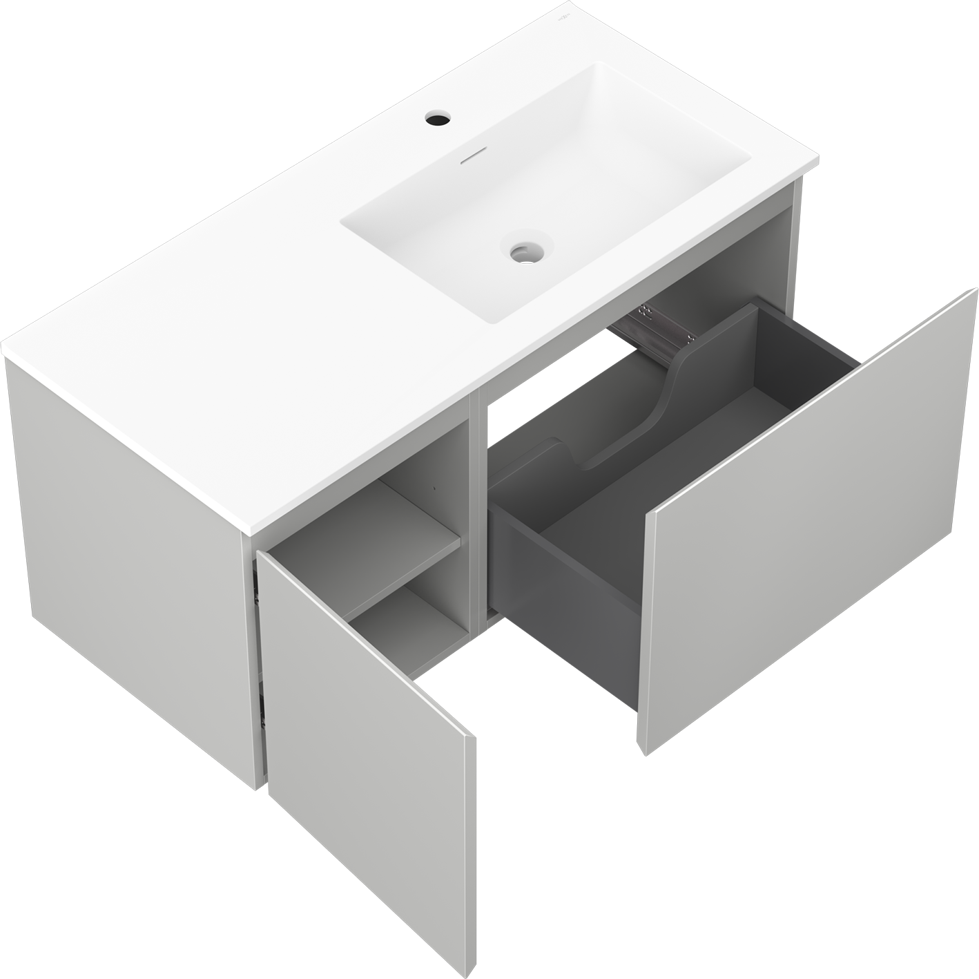 Mexen Orio koupelnová skříňka 100 cm s umyvadlem Otis pravá, 1S, 1D, šedá mat/bílá mat - 91A13-10047-3-BBFF62-W18P01