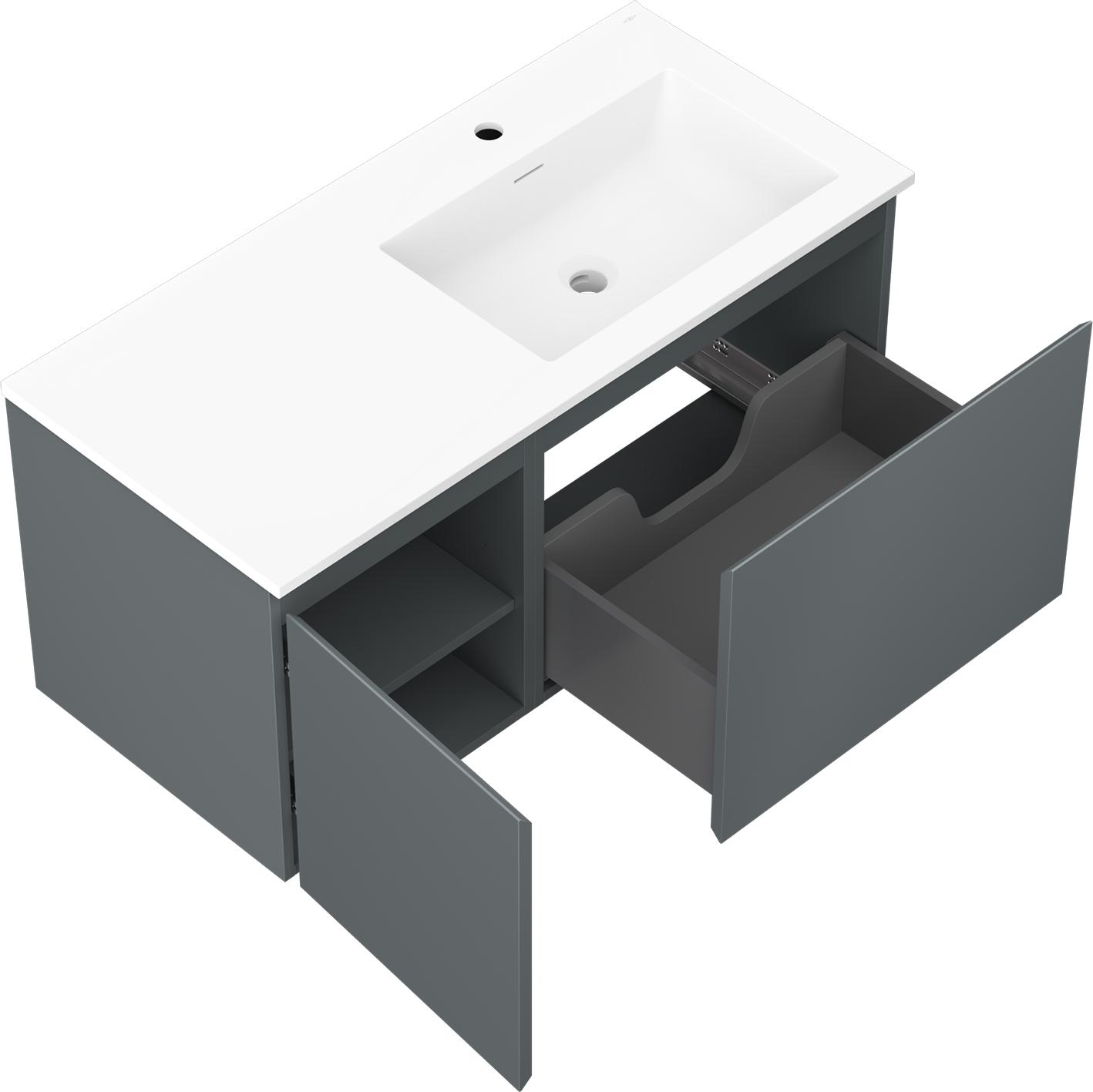 Mexen Orio koupelnová skříňka 100 cm s umyvadlem Otis pravá, 1S, 1D, grafit mat/bílá mat - 91A13-10047-3-BBFF66-W18P01