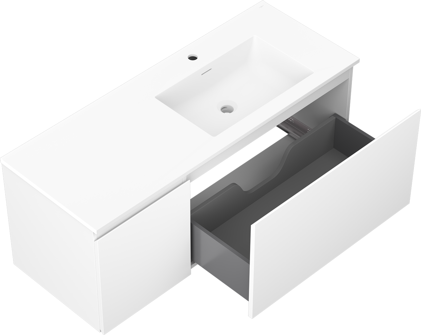 Mexen Orio koupelnová skříňka 120 cm s umyvadlem Otis pravé, 1S, 1D, bílá mat - 91A13-12047-3-BBFF01-W18P01