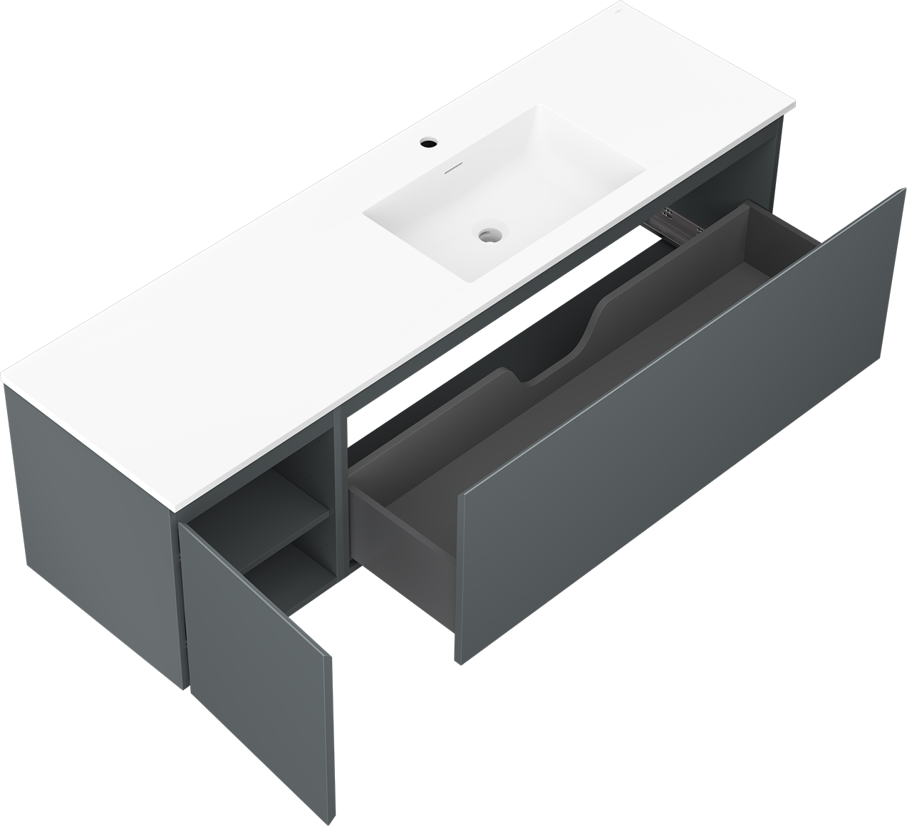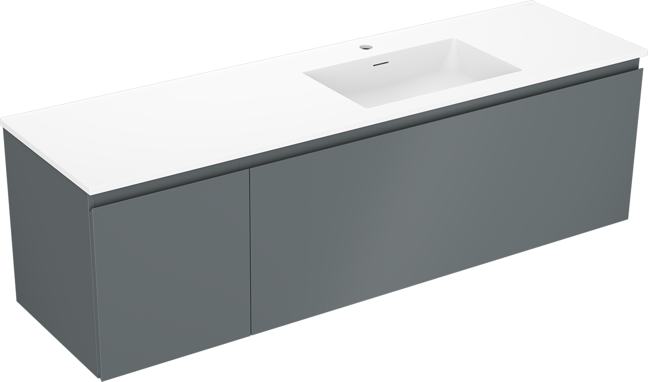 Mexen Orio koupelnová skříňka 160 cm s umyvadlem Otis pravá, 1S, 1D, grafit mat/bílá mat - 91A13-16047-3-BBFF66-W18P01