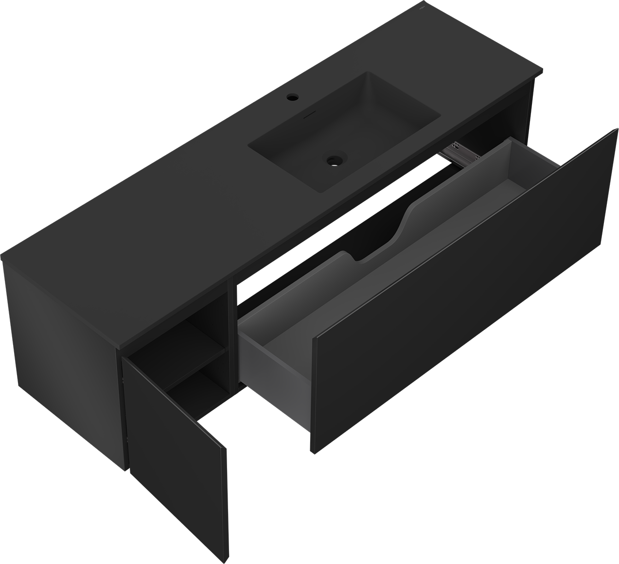 Mexen Orio koupelnová skříňka 160 cm s umyvadlem Otis pravá, 1S, 1D, černá mat - 91A13-16047-3-BBFF71-W18P71