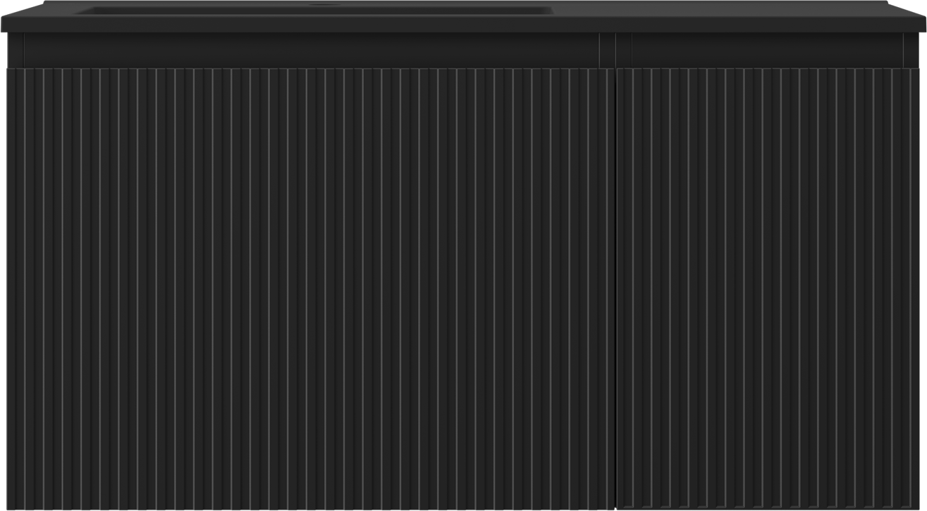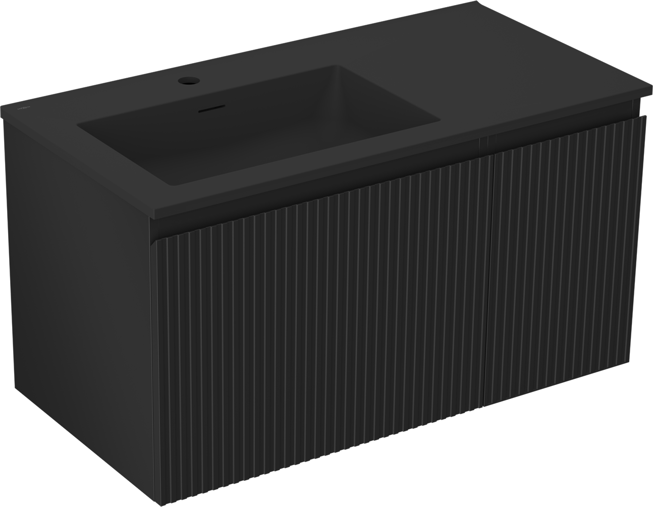 Mexen Rivel koupelnová skříňka 90 cm s umyvadlem Otis levým, 1S, 1D, drážkovaná, černý mat - 91A23-09047-3-BBFF71-W18L71