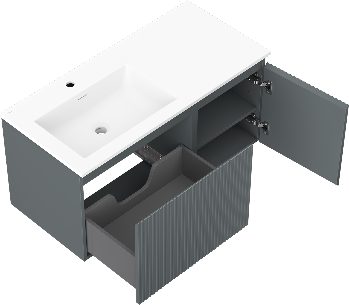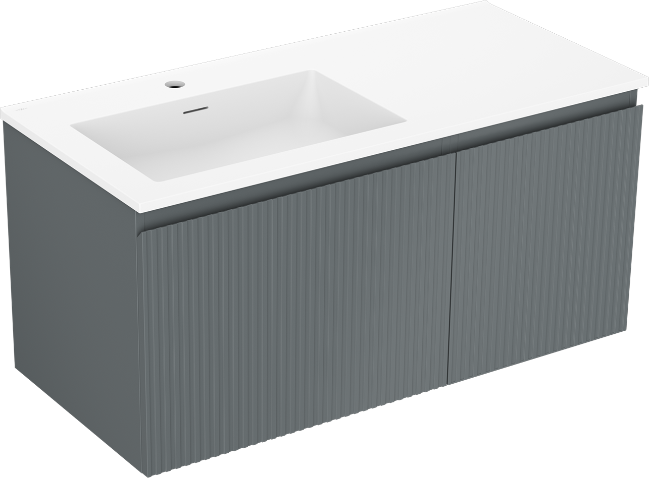 Mexen Rivel koupelnová skříňka 100 cm s umyvadlem Otis vlevo, 1S, 1D, drážkovaná, grafit mat/bílá mat