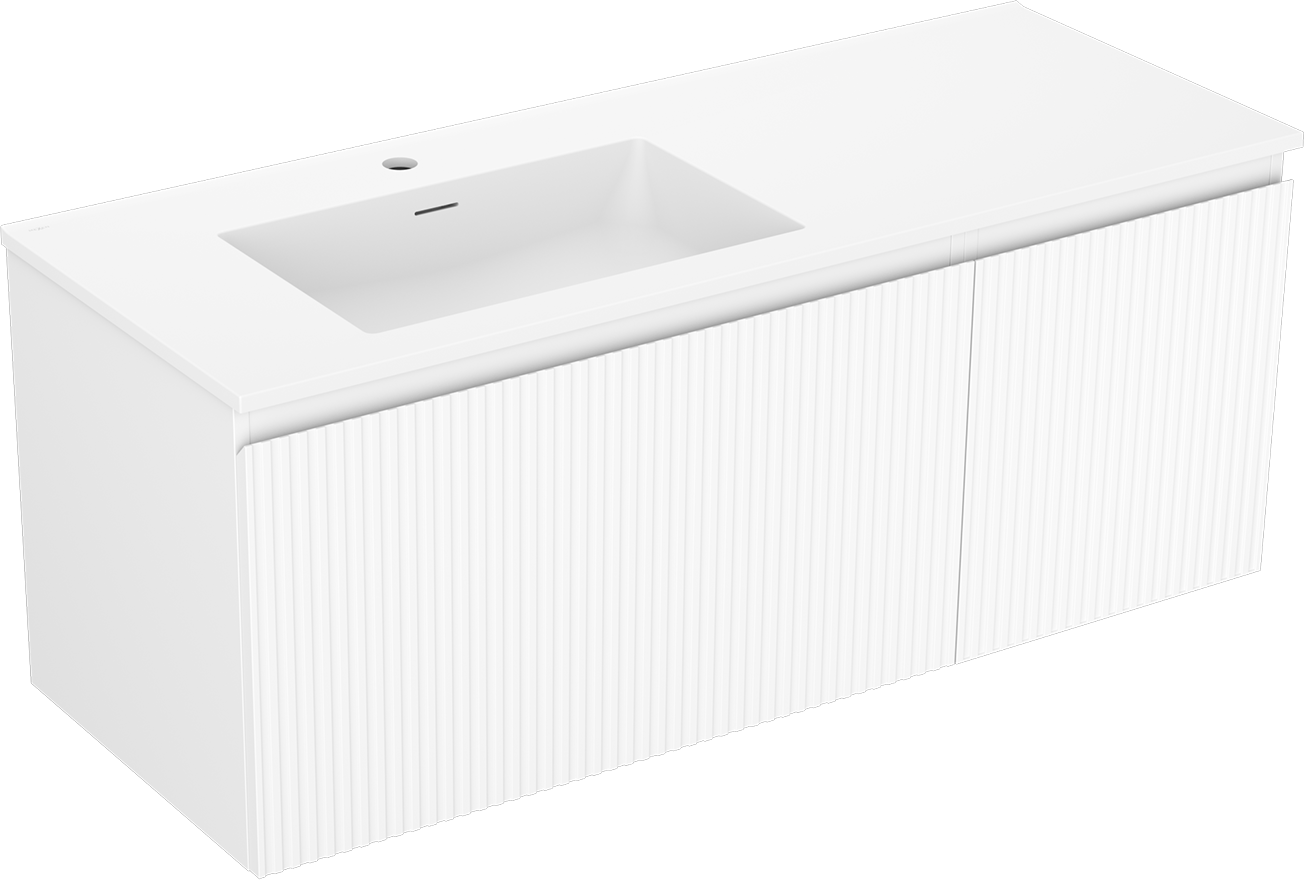 Mexen Rivel koupelnová skříňka 120 cm s umyvadlem Otis levým, 1S, 1D, drážkovaná, bílá mat - 91A23-12047-3-BBFF01-W18L01