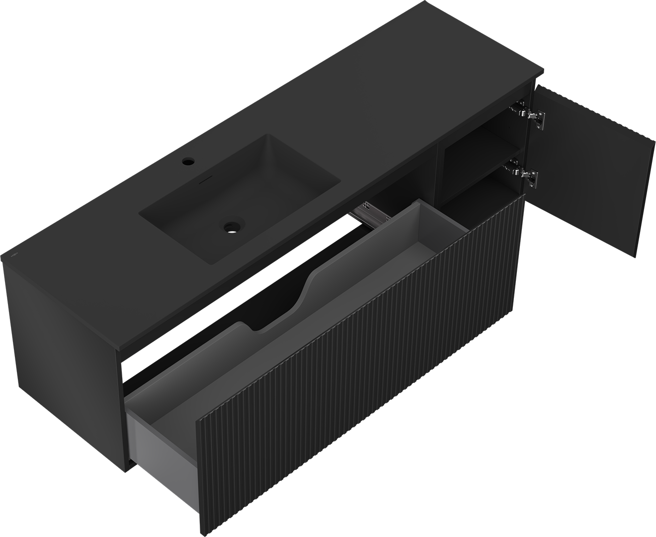 Mexen Rivel koupelnová skříňka 160 cm s umyvadlem Otis vlevo, 1S, 1D, drážkovaná, černá mat - 91A23-16047-3-BBFF71-W18L71