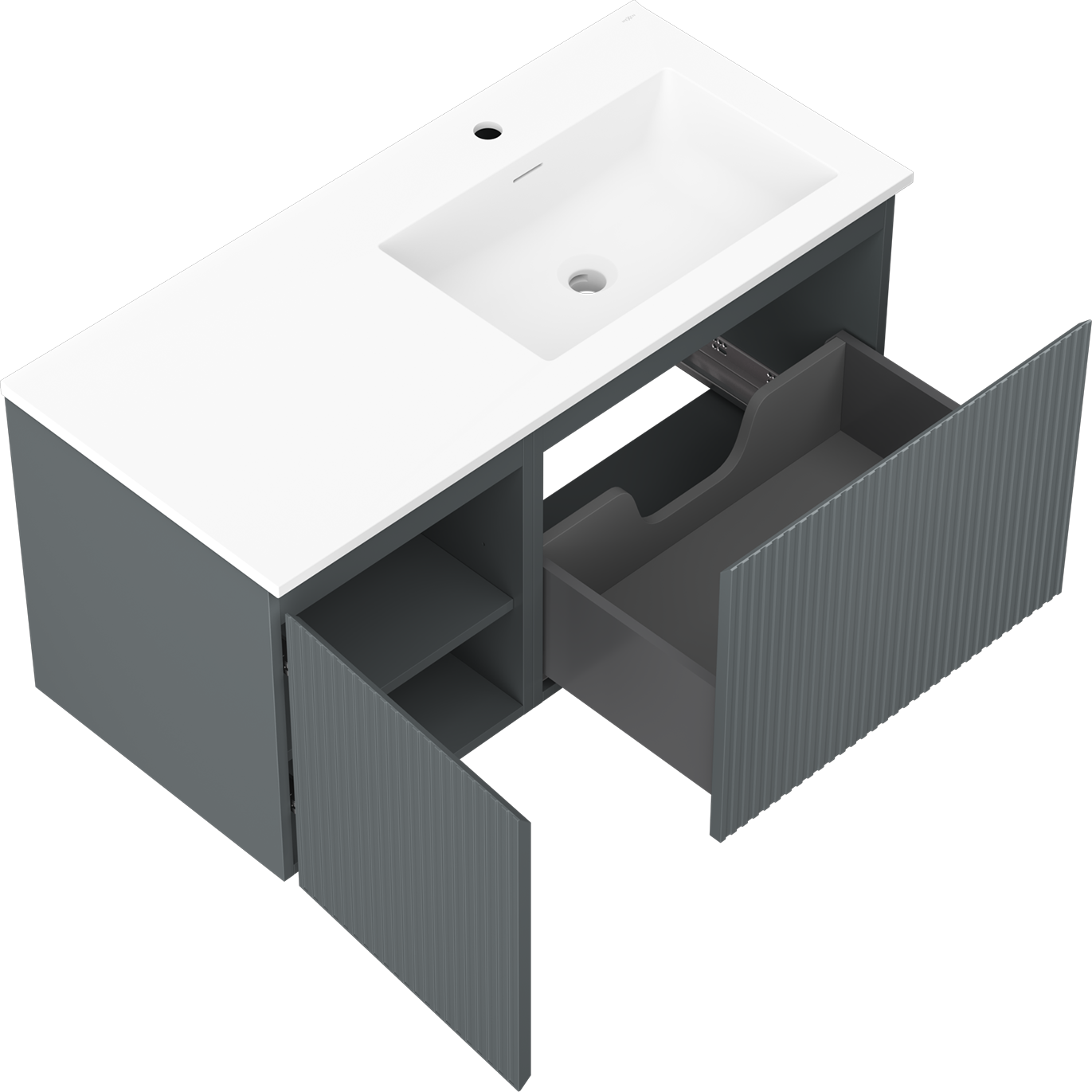 Mexen Rivel koupelnová skříňka 100 cm s umyvadlem Otis pravým, 1S, 1D, rýhovaná, grafit/bílá mat - 91A23-10047-3-BBFF66-W18P01