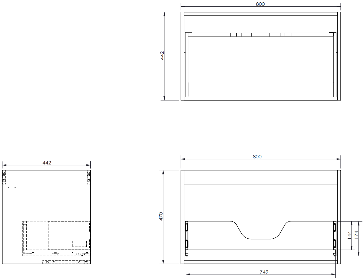 Výřez v zásuvce je navržen tak, aby pojmul sifon, který je nezbytný v instalacích umyvadlových. Díky tomu může být nábytek plně funkčně namontován, aniž by bylo nutné vzdát se prostoru v zásuvce ve prospěch instalace.
