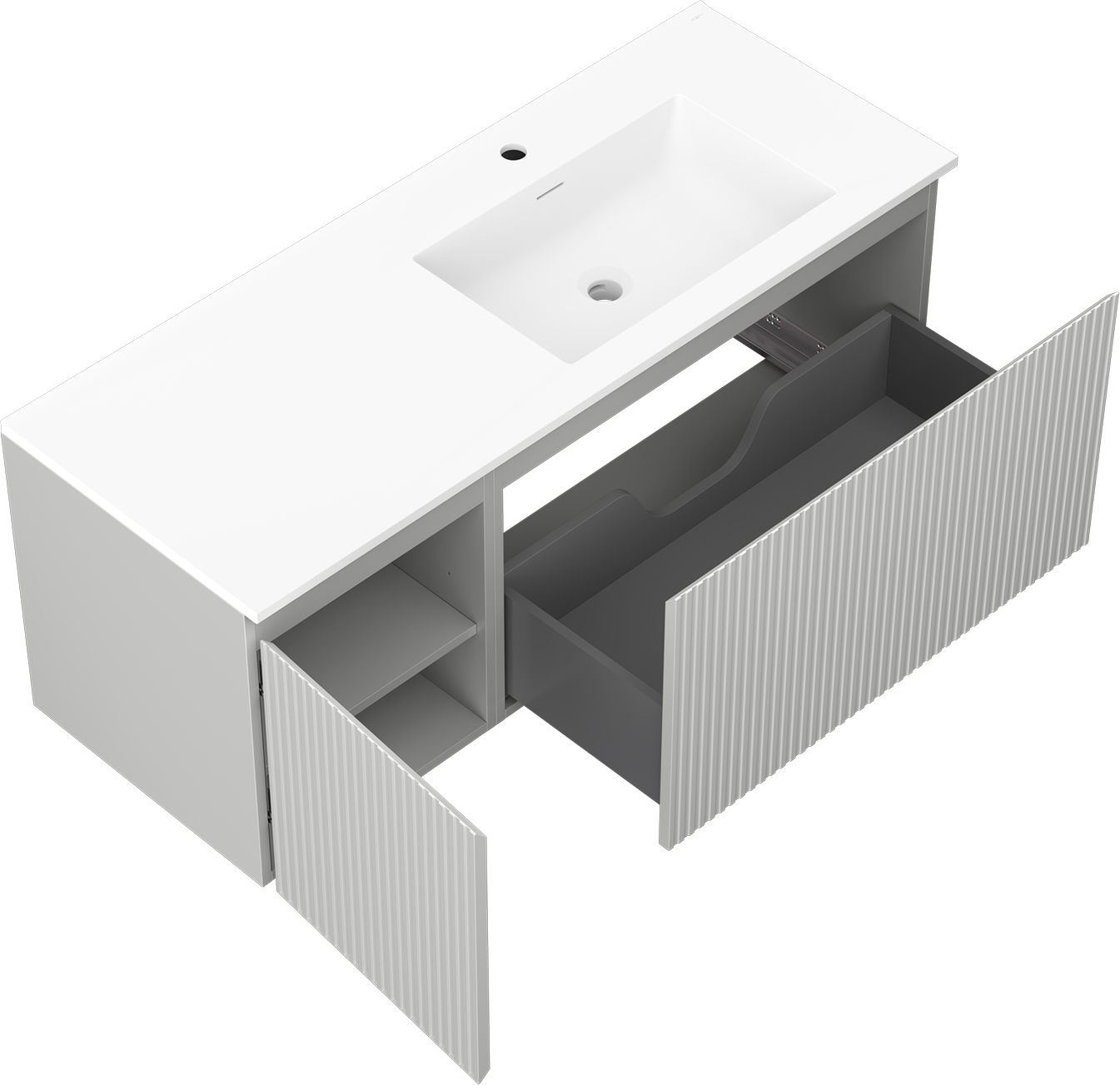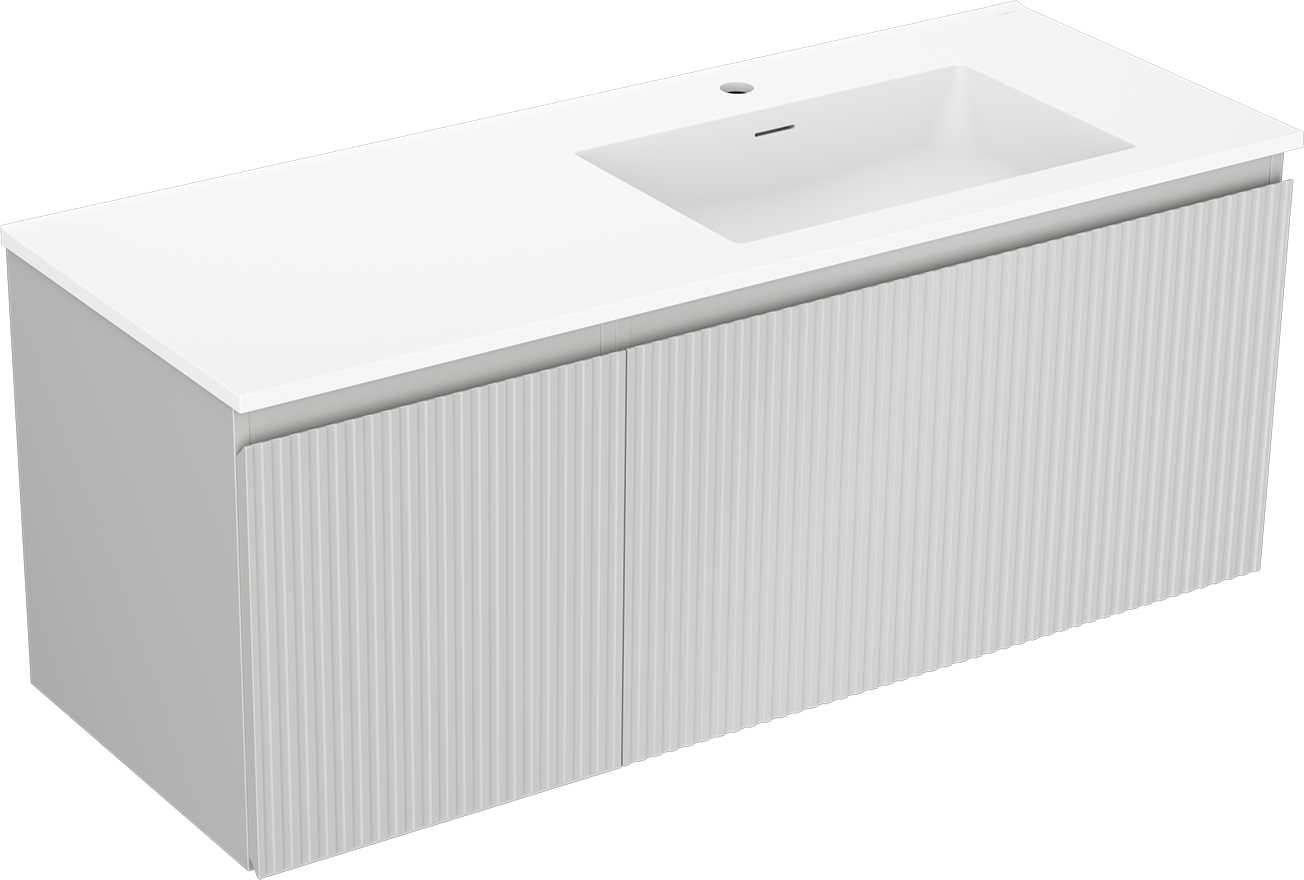 Mexen Rivel koupelnová skříňka 120 cm s umyvadlem Otis pravá, 1S, 1D, rýhovaná, šedá mat/bílá mat - 91A23-12047-3-BBFF62-W18P01