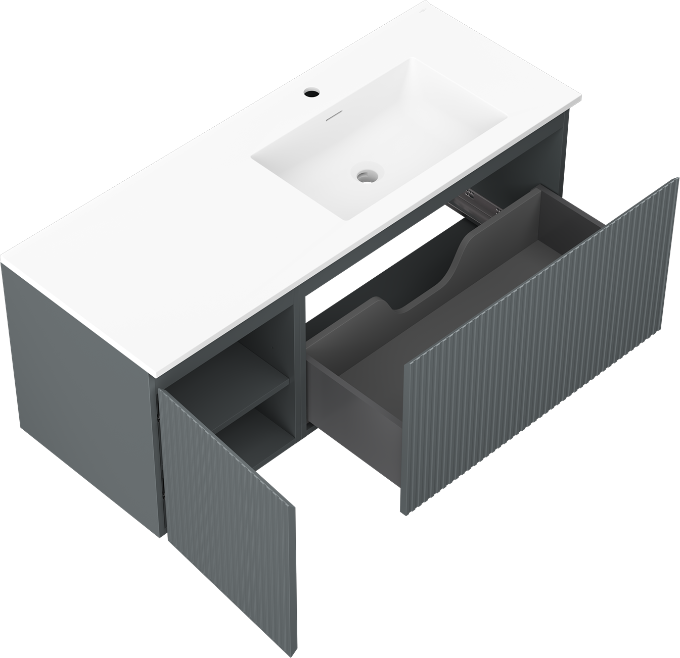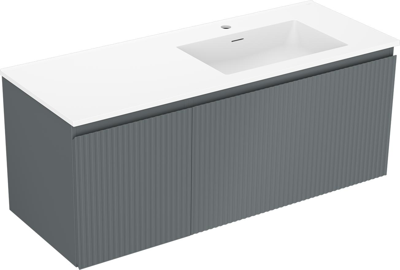 Mexen Rivel koupelnová skříňka 120 cm s umyvadlem Otis pravá, 1S, 1D, drážkovaná, grafit/bílá mat - 91A23-12047-3-BBFF66-W18P01
