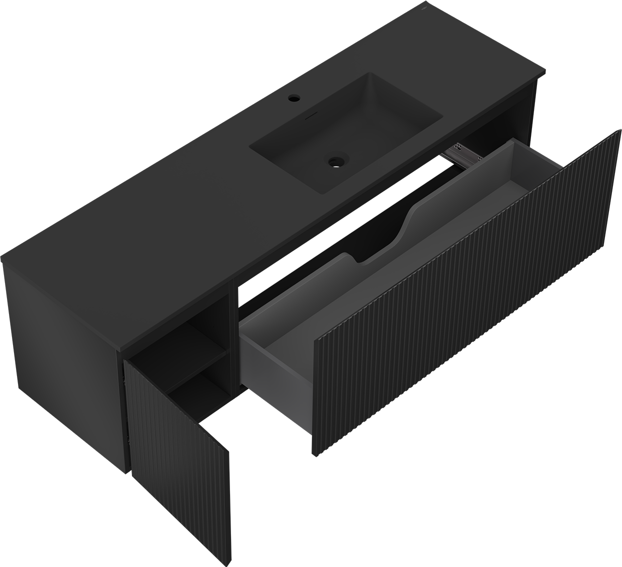 Mexen Rivel koupelnová skříňka 160 cm s umyvadlem Otis pravá, 1S, 1D, drážkovaná, černá mat - 91A23-16047-3-BBFF71-W18P71
