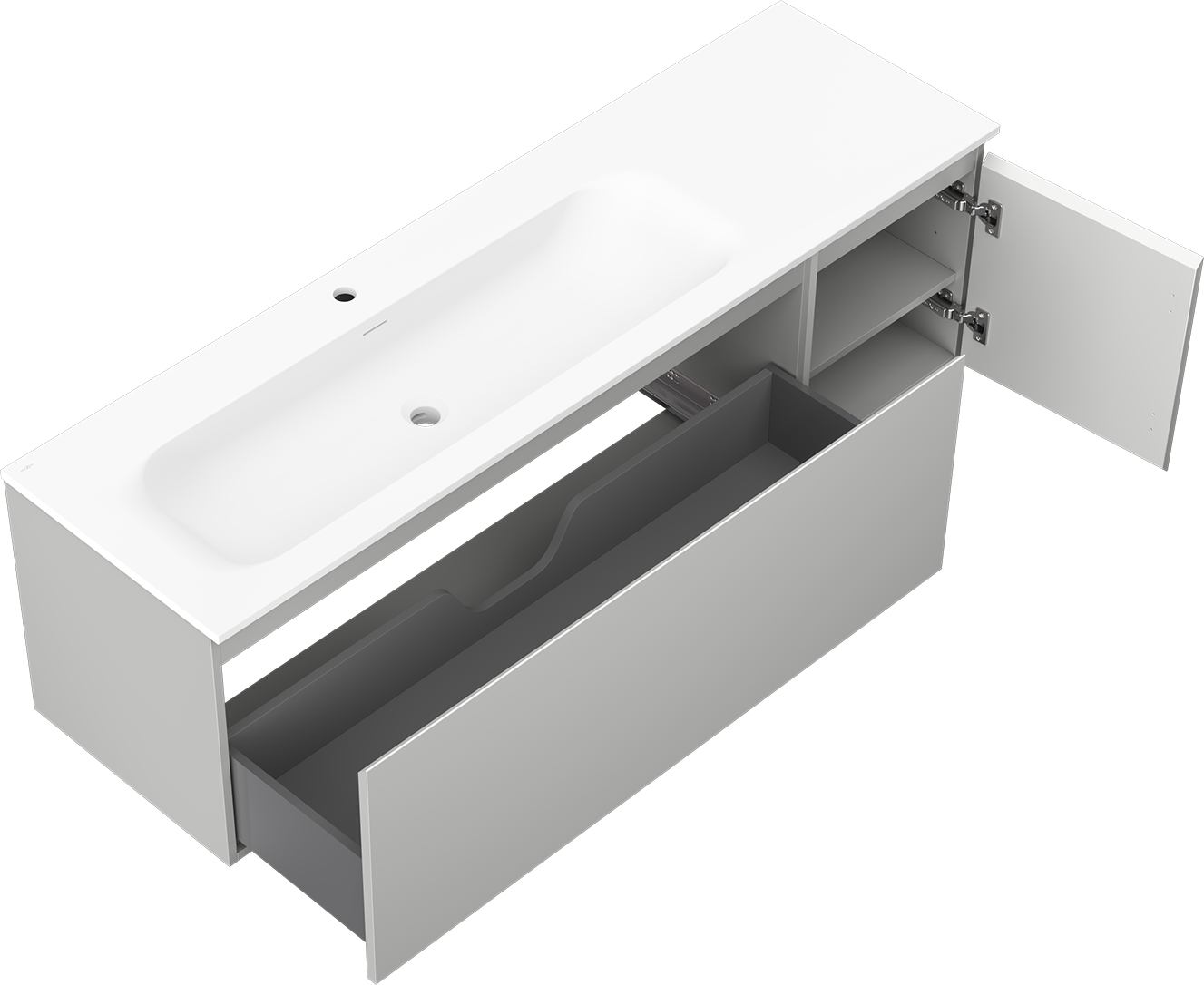 Výřez v zásuvce je navržen tak, aby pojmul sifon, který je nezbytný v instalacích umyvadlových. Díky tomu může být nábytek plně funkčně namontován, aniž by bylo nutné vzdát se prostoru v zásuvce ve prospěch instalace.