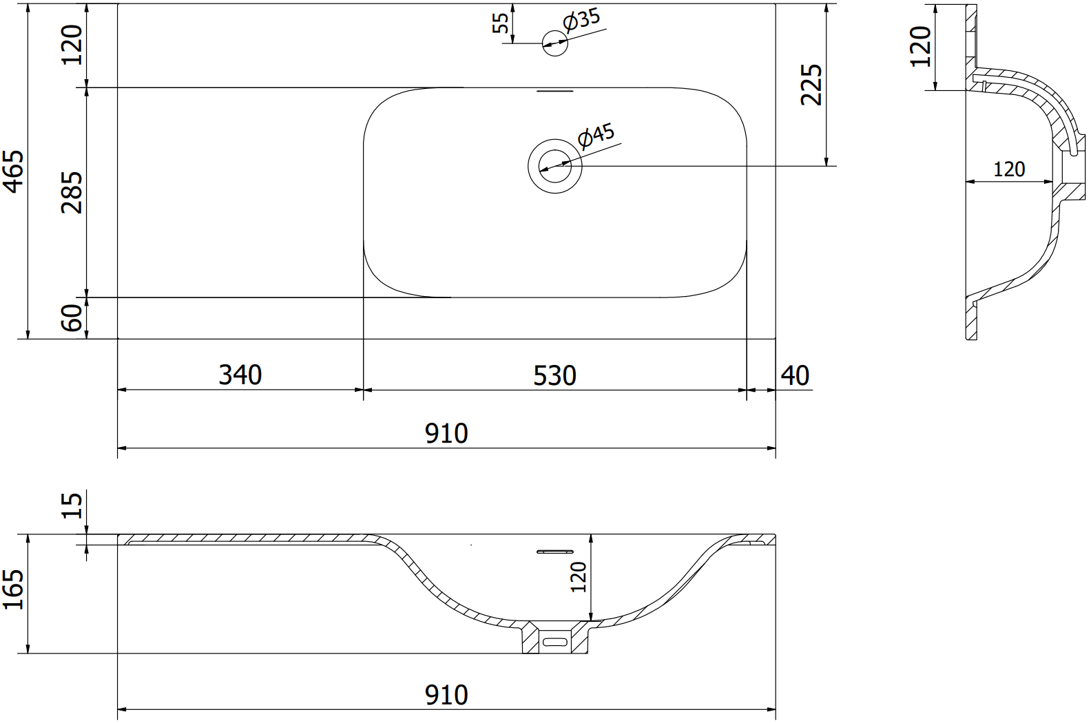 Výřez v zásuvce je navržen tak, aby pojmul sifon, který je nezbytný v instalacích umyvadlových. Díky tomu může být nábytek plně funkčně namontován, aniž by bylo nutné vzdát se prostoru v zásuvce ve prospěch instalace.