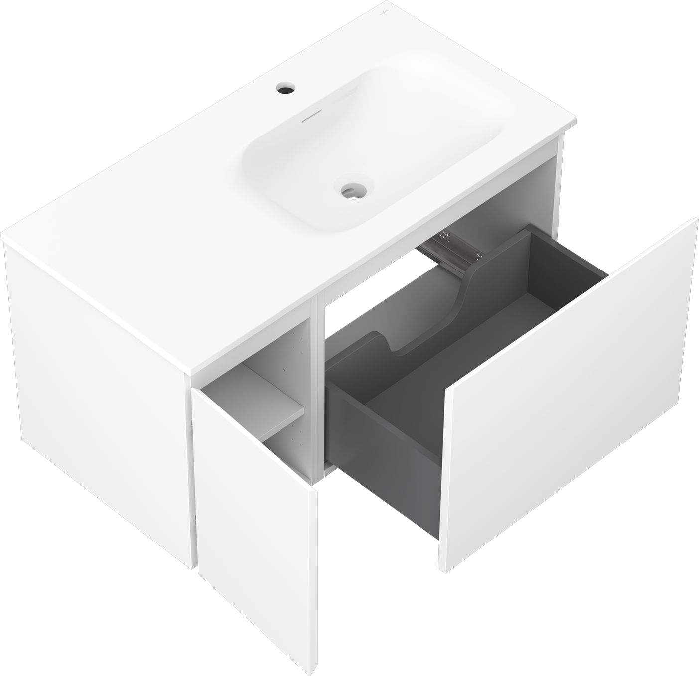 Výřez v zásuvce je navržen tak, aby pojmul sifon, který je nezbytný v instalacích umyvadlových. Díky tomu může být nábytek plně funkčně namontován, aniž by bylo nutné vzdát se prostoru v zásuvce ve prospěch instalace.