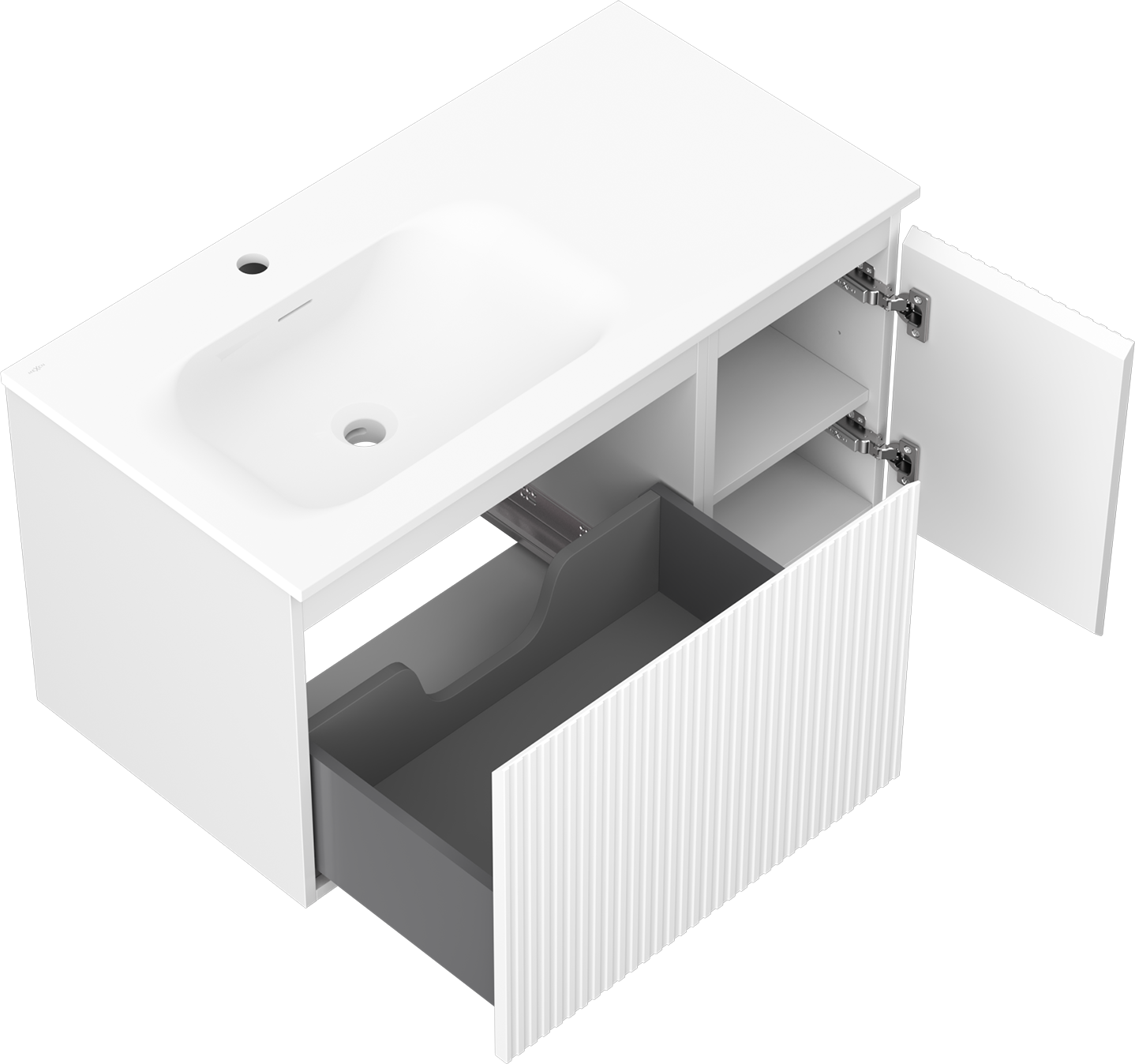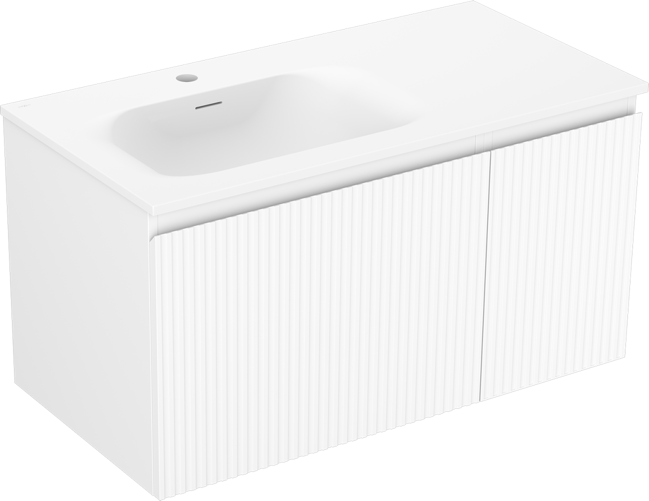Mexen Rivel koupelnová skříňka 90 cm s umyvadlem Vela levá, 1S, 1D, rýhovaná, bílá matná - 91A23-09047-3-BBFF01-W23L01