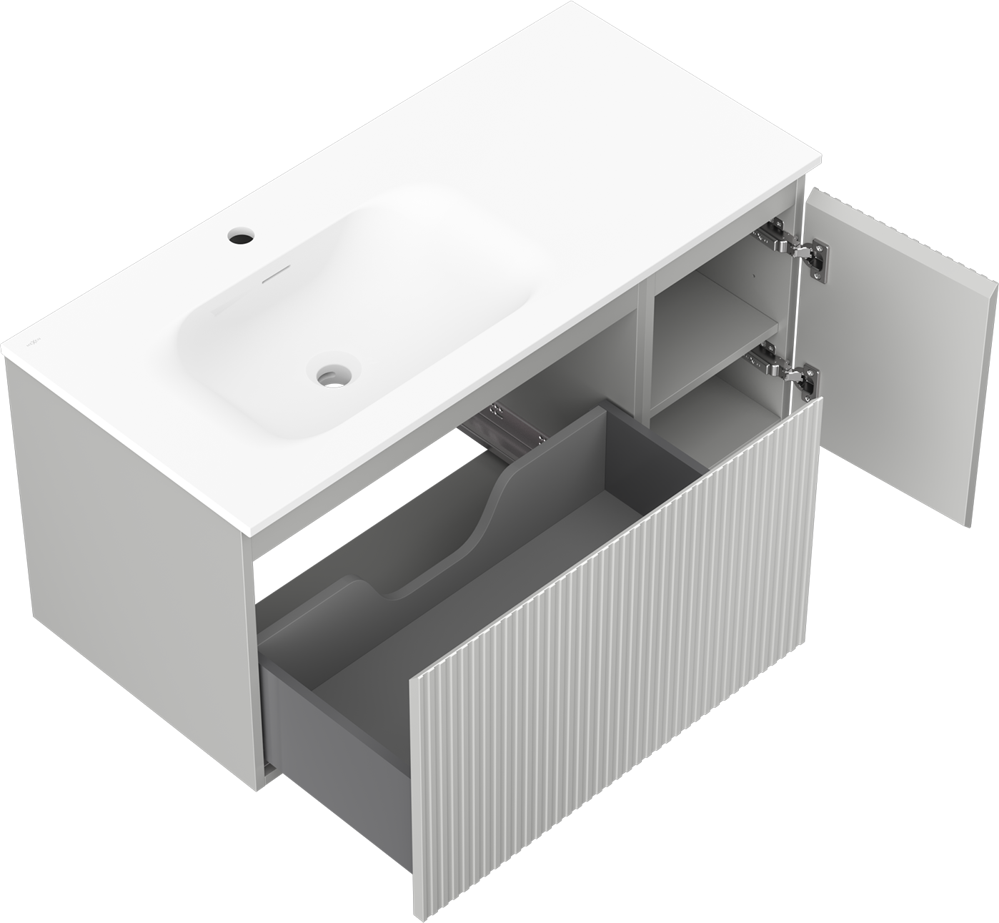 Výřez v zásuvce je navržen tak, aby pojmul sifon, který je nezbytný v instalacích umyvadlových. Díky tomu může být nábytek plně funkčně namontován, aniž by bylo nutné vzdát se prostoru v zásuvce ve prospěch instalace.