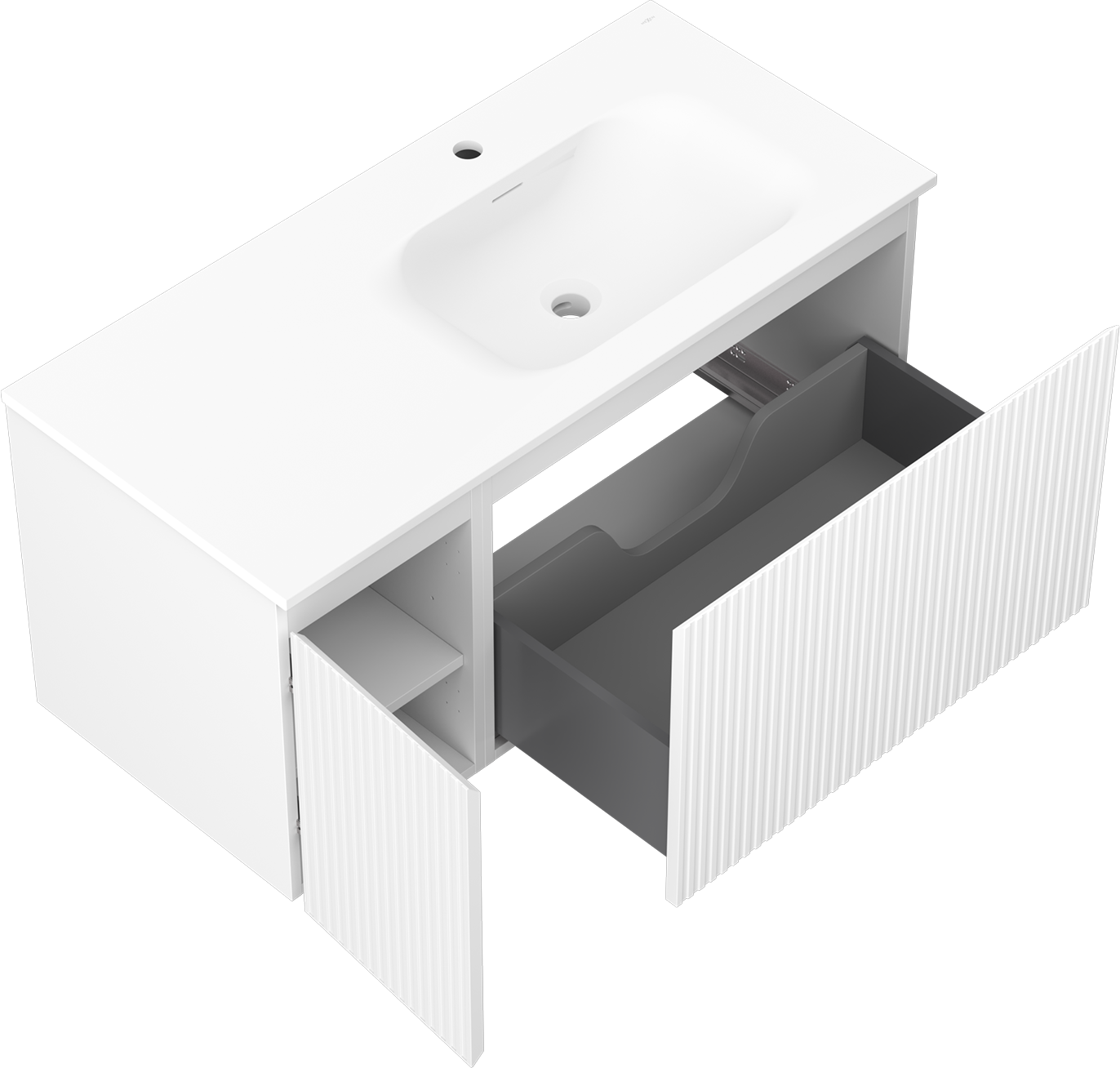 Výřez v zásuvce je navržen tak, aby pojmul sifon, který je nezbytný v instalacích umyvadlových. Díky tomu může být nábytek plně funkčně namontován, aniž by bylo nutné vzdát se prostoru v zásuvce ve prospěch instalace.
