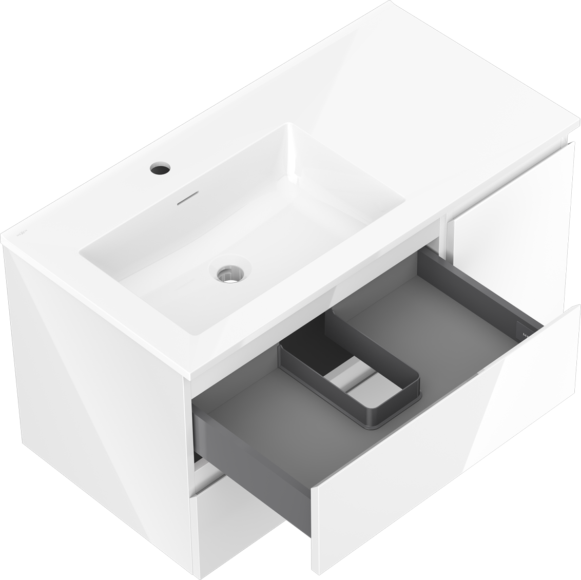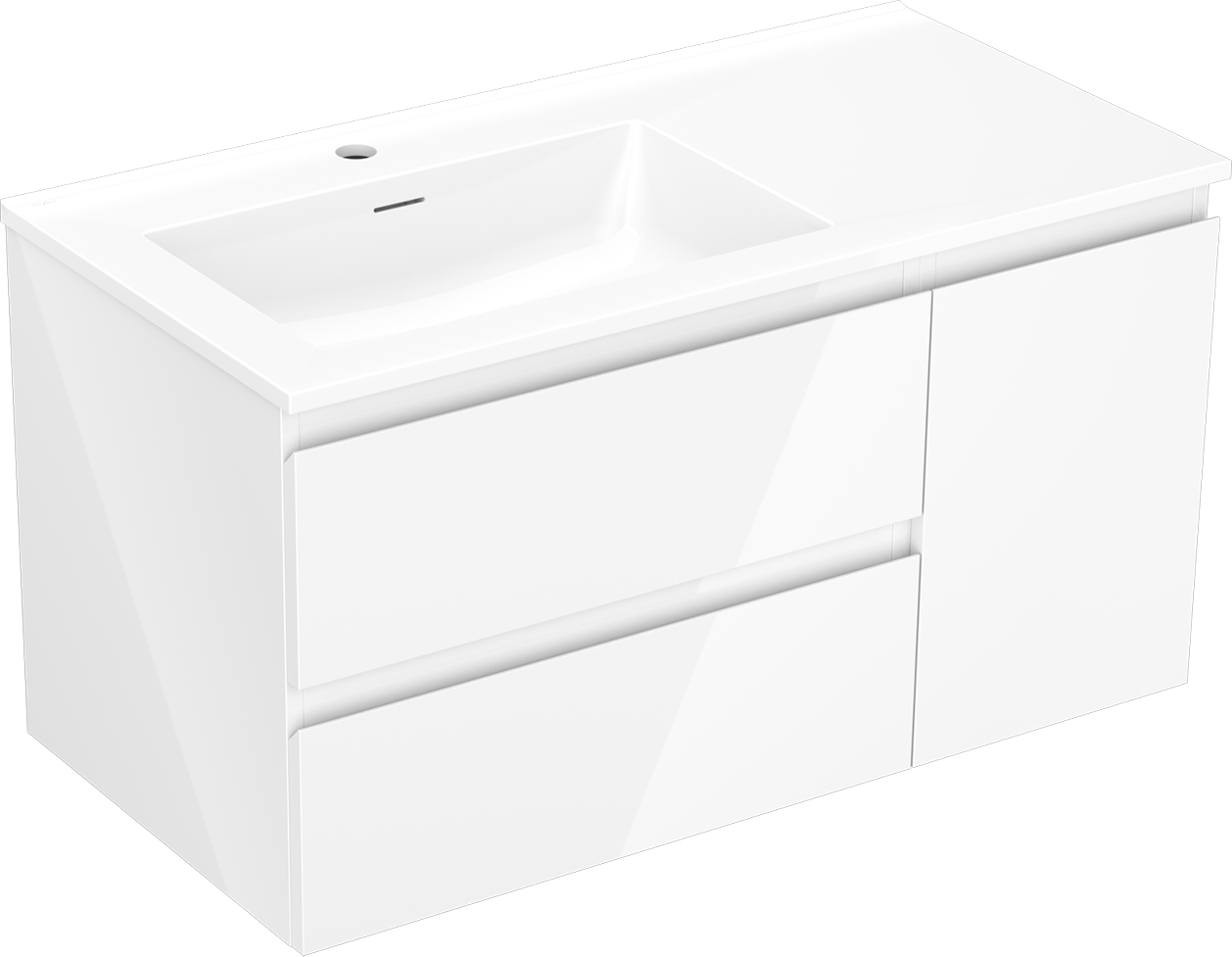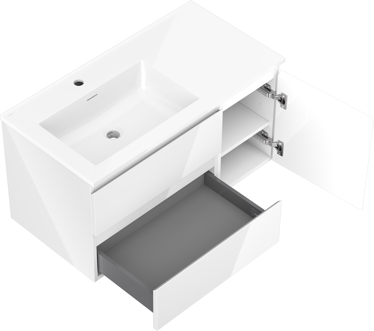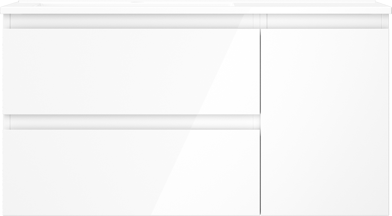 Mexen Orio koupelnová skříňka 90 cm s umyvadlem Otis vlevo, 2S, 1D, bílá lesklá - 91A13-09047-3-BBFFF00-W18L00