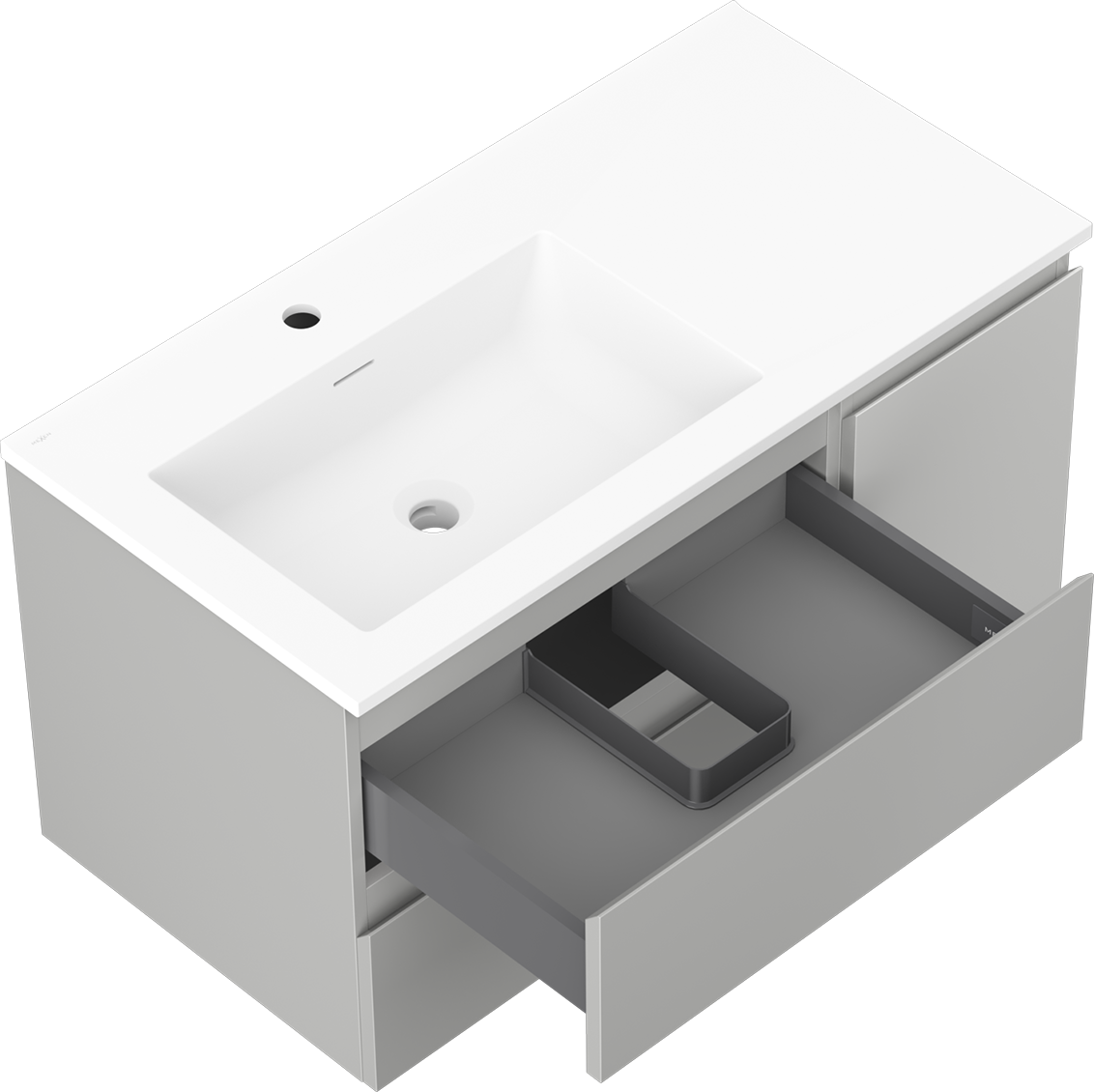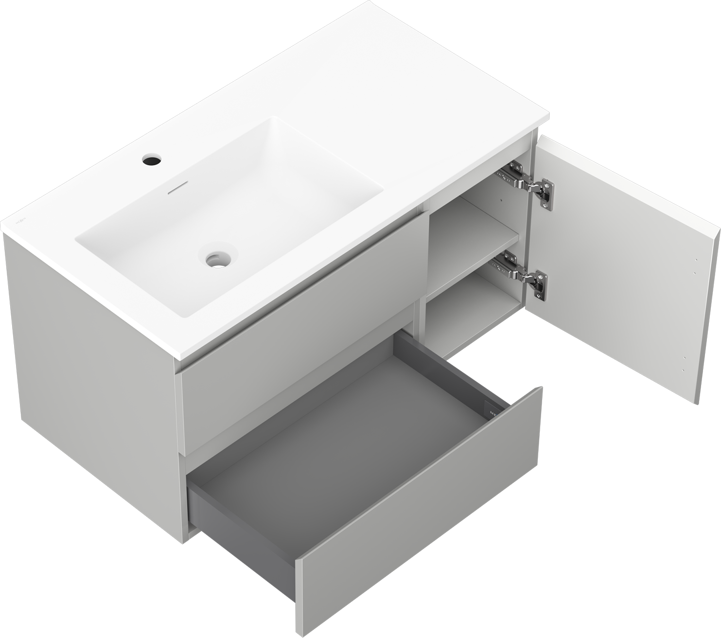 Mexen Orio koupelnová skříňka 90 cm s umyvadlem Otis levé, 2S, 1D, šedá mat/bílá mat - 91A13-09047-3-BBFFF62-W18L01