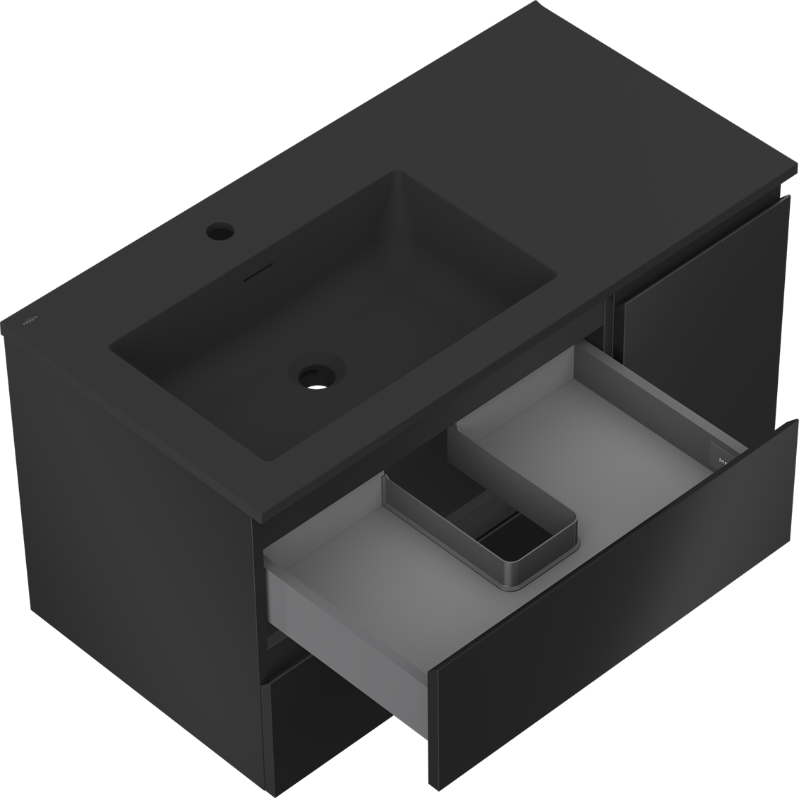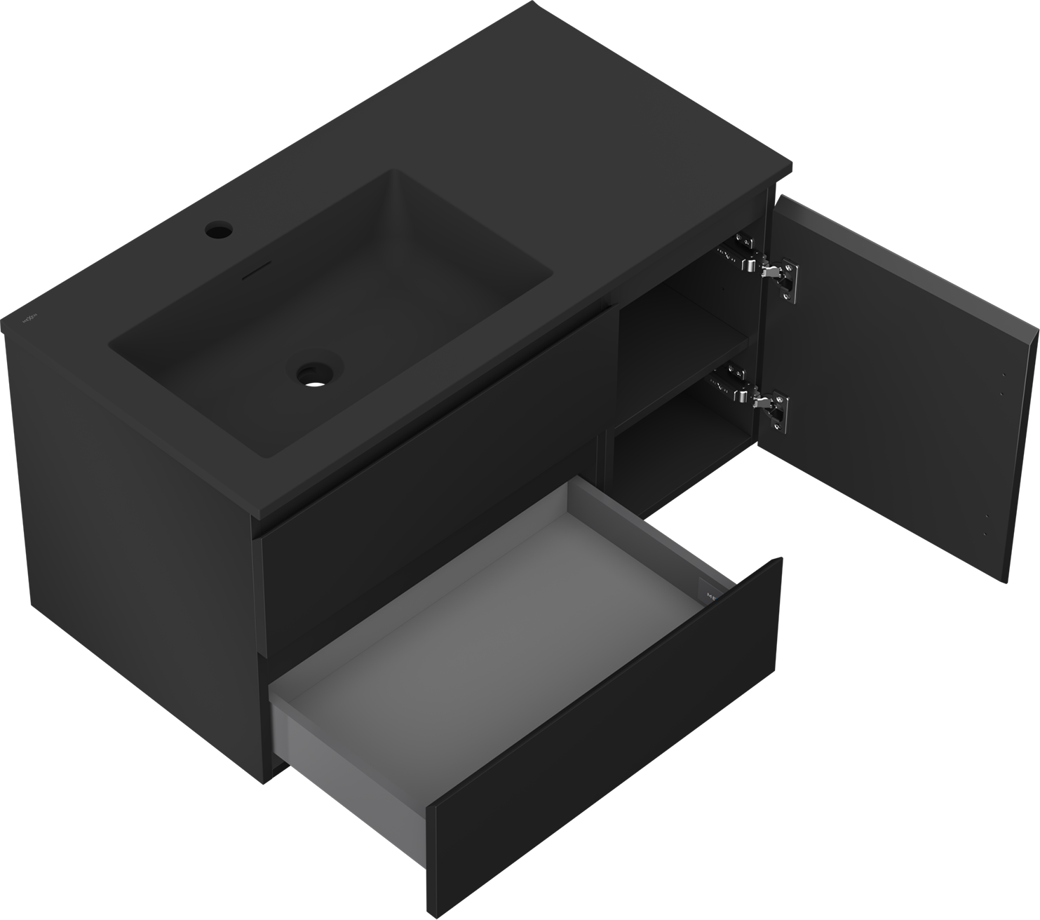 Mexen Orio koupelnová skříňka 90 cm s umyvadlem Otis levé, 2S, 1D, černá mat - 91A13-09047-3-BBFFF71-W18L71