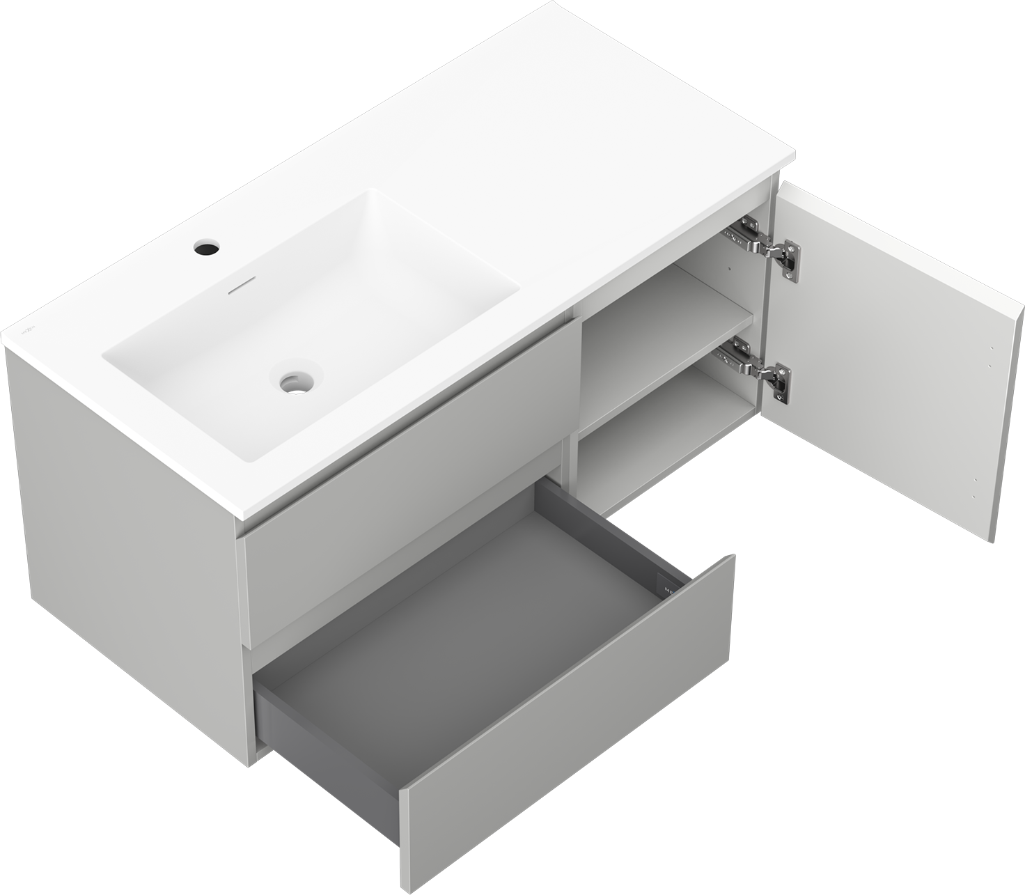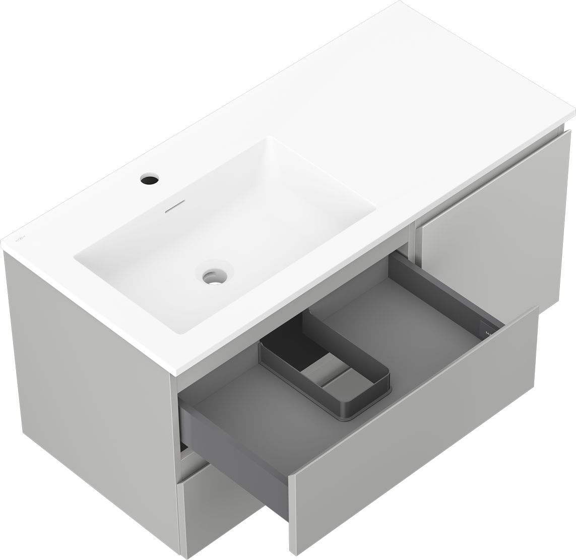 Výřez v zásuvce je navržen tak, aby pojmul sifon, který je nezbytný v instalacích umyvadlových. Díky tomu může být nábytek plně funkčně namontován, aniž by bylo nutné vzdát se prostoru v zásuvce ve prospěch instalace.