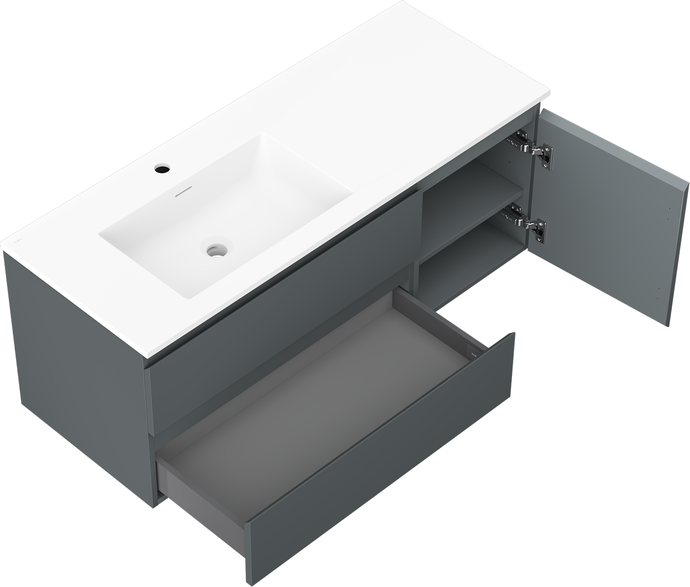 Naše modulární koupelnový nábytek lze kombinovat v různých barevných konfiguracích, což umožňuje plnou personalizaci. Můžete si vybrat jak vzhled, tak funkce jednotlivých prvků, což umožňuje přizpůsobit nábytek vašim stylovým a uživatelským preferencím.