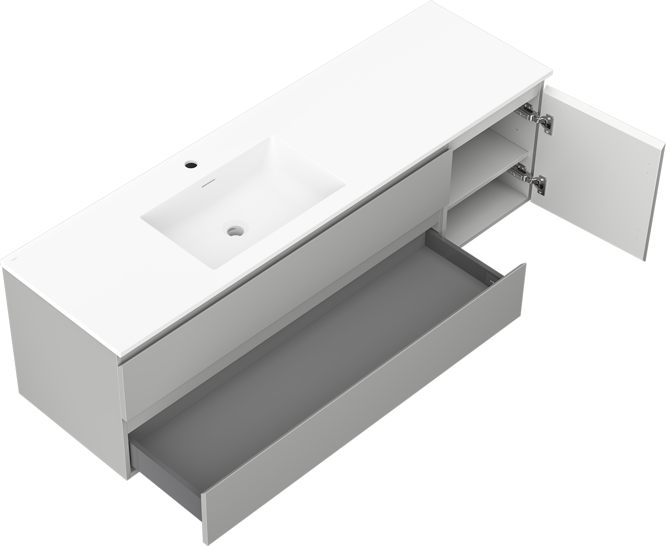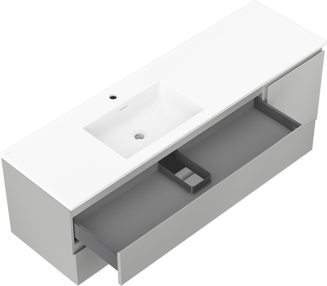 Výřez v zásuvce je navržen tak, aby pojmul sifon, který je nezbytný v instalacích umyvadlových. Díky tomu může být nábytek plně funkčně namontován, aniž by bylo nutné vzdát se prostoru v zásuvce ve prospěch instalace.