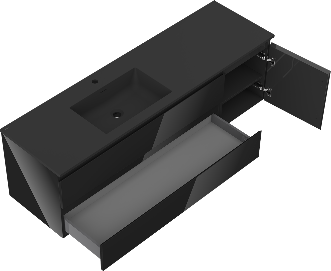 Výřez v zásuvce je navržen tak, aby pojmul sifon, který je nezbytný v instalacích umyvadlových. Díky tomu může být nábytek plně funkčně namontován, aniž by bylo nutné vzdát se prostoru v zásuvce ve prospěch instalace.