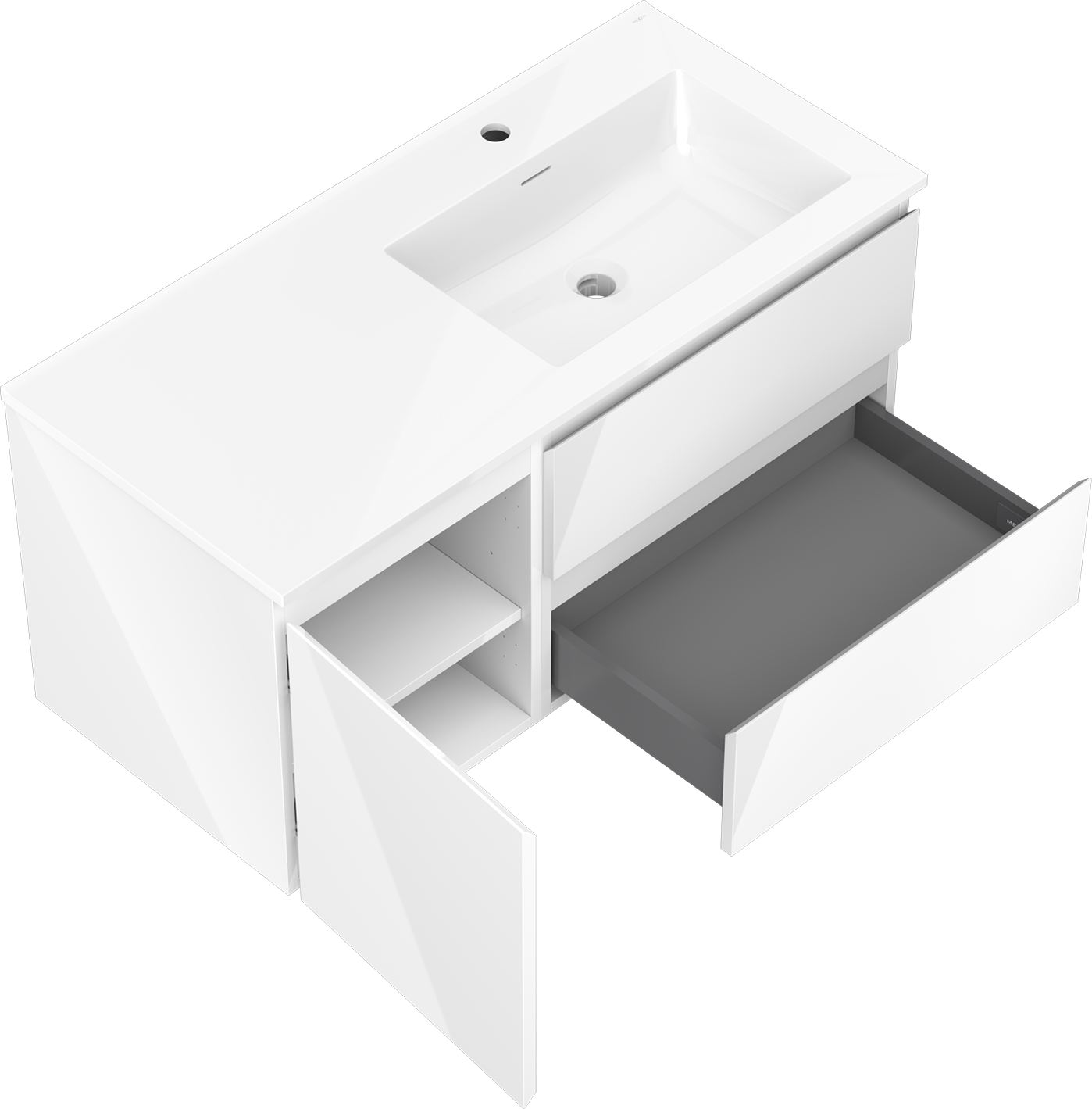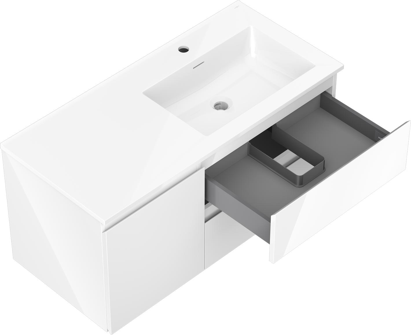 Výřez v zásuvce je navržen tak, aby pojmul sifon, který je nezbytný v instalacích umyvadlových. Díky tomu může být nábytek plně funkčně namontován, aniž by bylo nutné vzdát se prostoru v zásuvce ve prospěch instalace.
