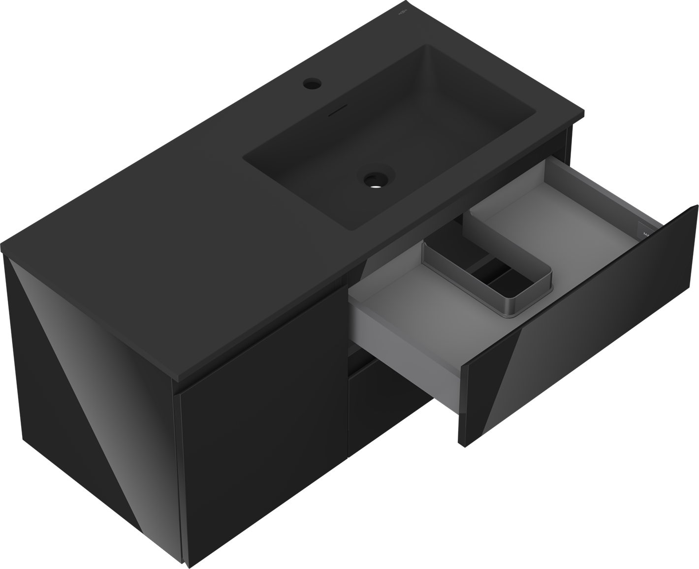 Výřez v zásuvce je navržen tak, aby pojmul sifon, který je nezbytný v instalacích umyvadlových. Díky tomu může být nábytek plně funkčně namontován, aniž by bylo nutné vzdát se prostoru v zásuvce ve prospěch instalace.