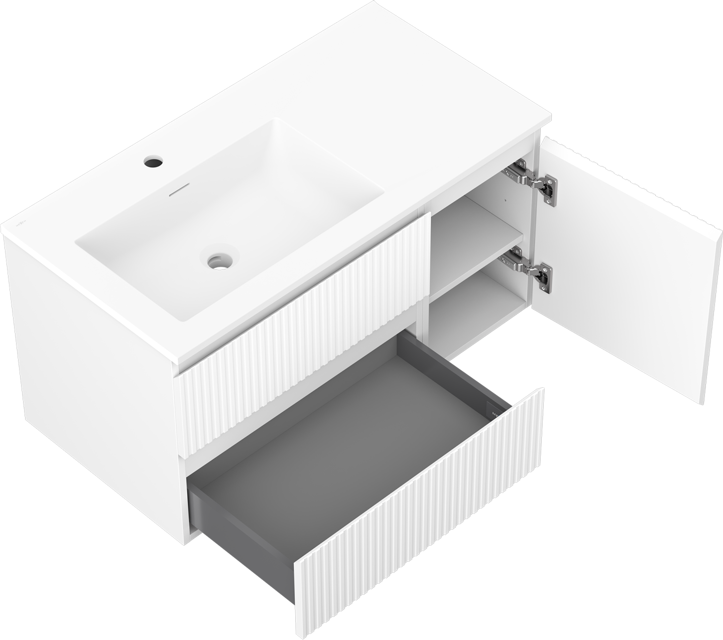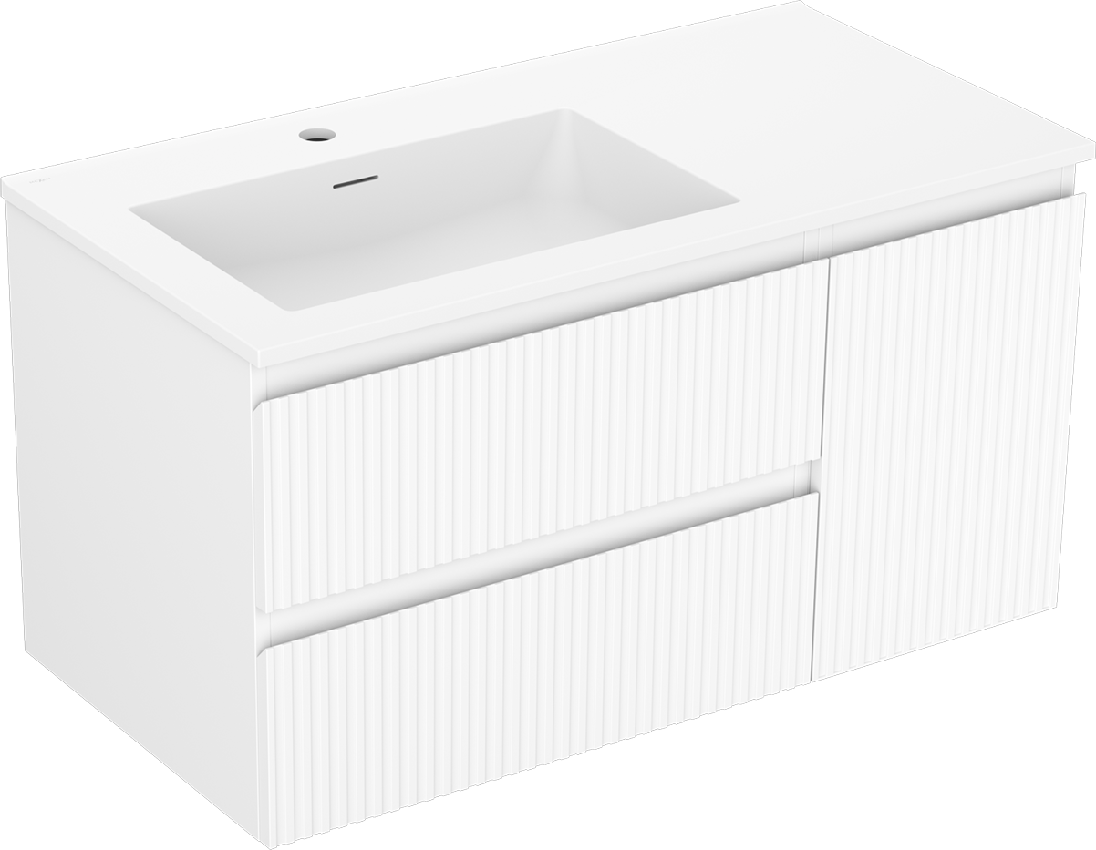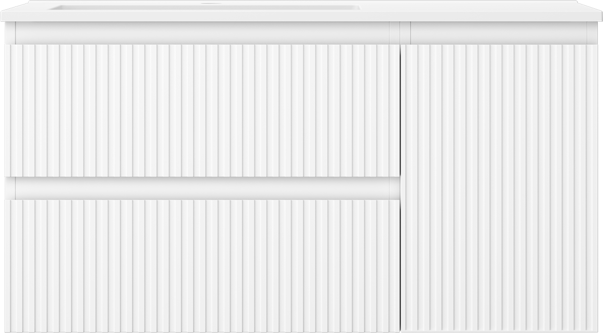 Mexen Rivel koupelnová skříňka 90 cm s umyvadlem Otis levým, 2S, 1D, drážkovaná, bílá mat - 91A23-09047-3-BBFFF01-W18L01