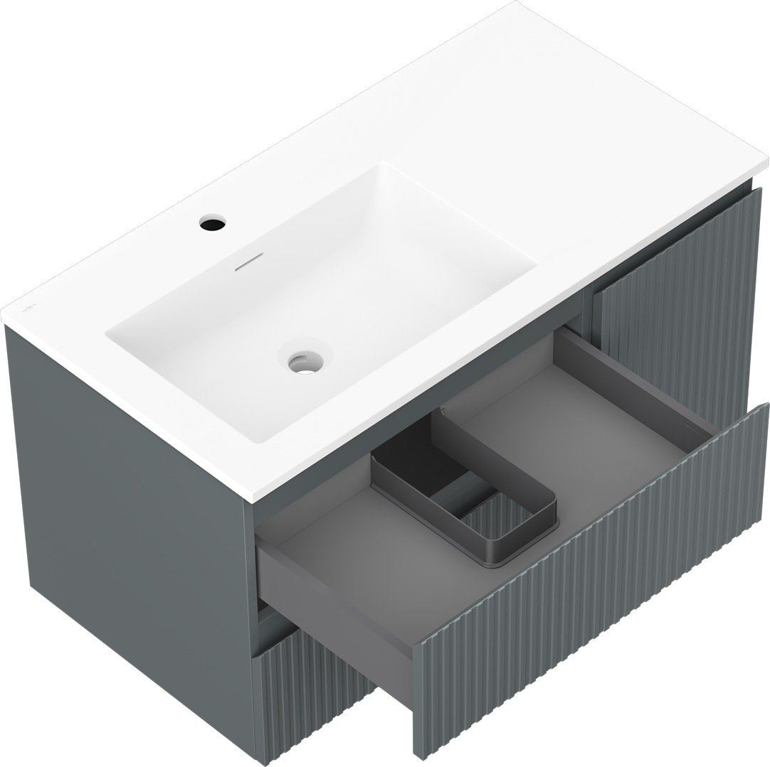 Výřez v zásuvce je navržen tak, aby pojmul sifon, který je nezbytný v instalacích umyvadlových. Díky tomu může být nábytek plně funkčně namontován, aniž by bylo nutné vzdát se prostoru v zásuvce ve prospěch instalace.