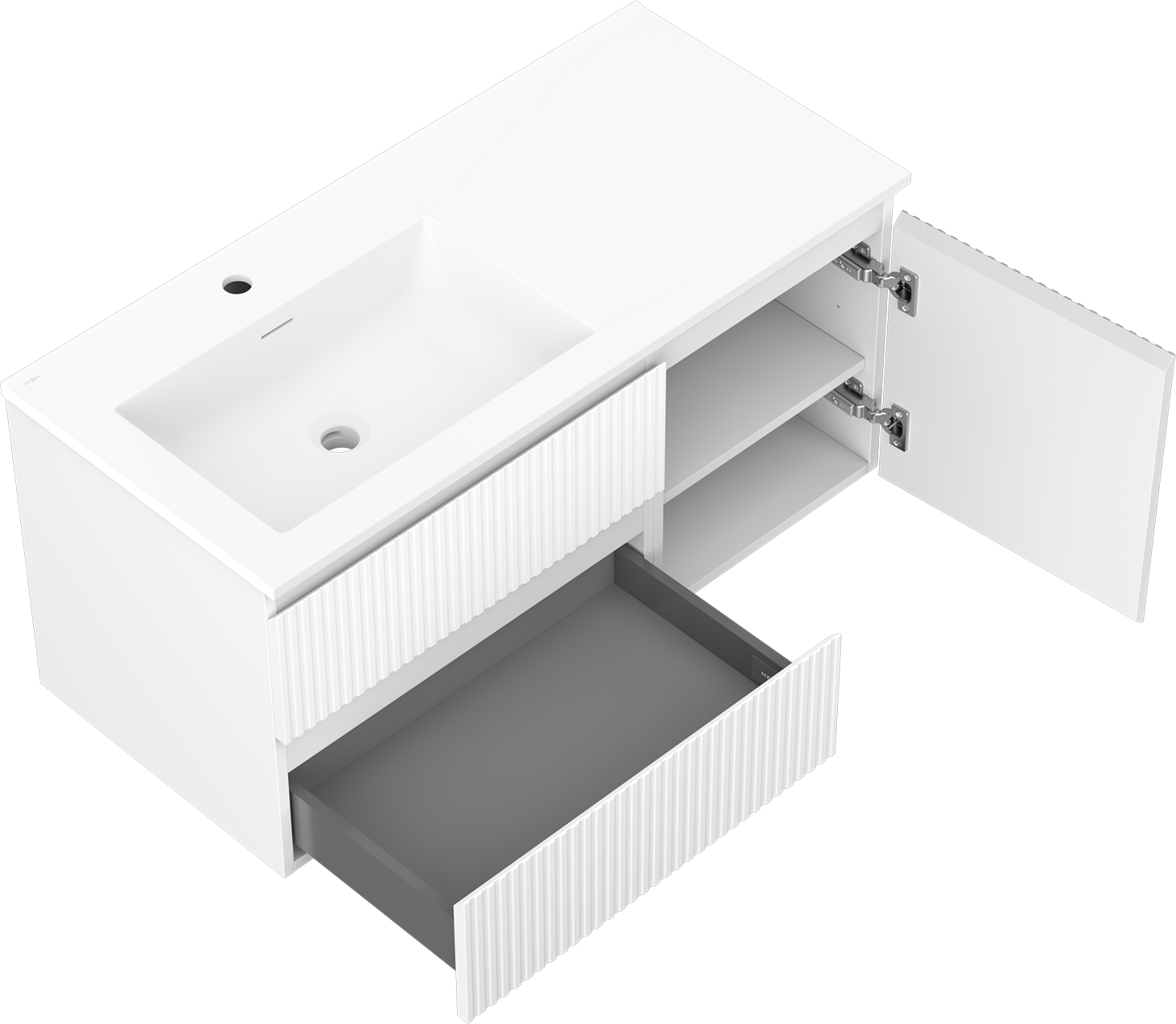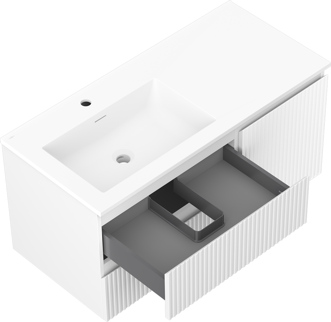 Výřez v zásuvce je navržen tak, aby pojmul sifon, který je nezbytný v instalacích umyvadlových. Díky tomu může být nábytek plně funkčně namontován, aniž by bylo nutné vzdát se prostoru v zásuvce ve prospěch instalace.