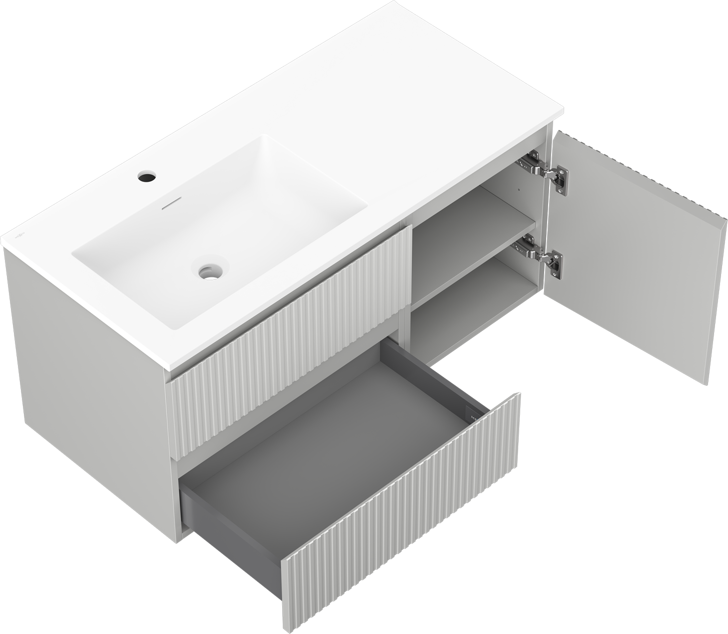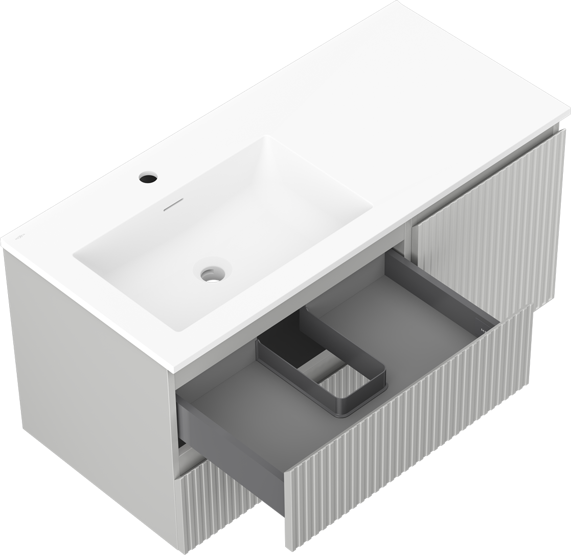 Výřez v zásuvce je navržen tak, aby pojmul sifon, který je nezbytný v instalacích umyvadlových. Díky tomu může být nábytek plně funkčně namontován, aniž by bylo nutné vzdát se prostoru v zásuvce ve prospěch instalace.