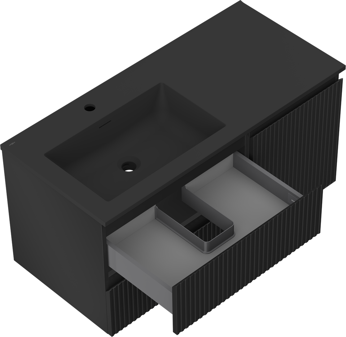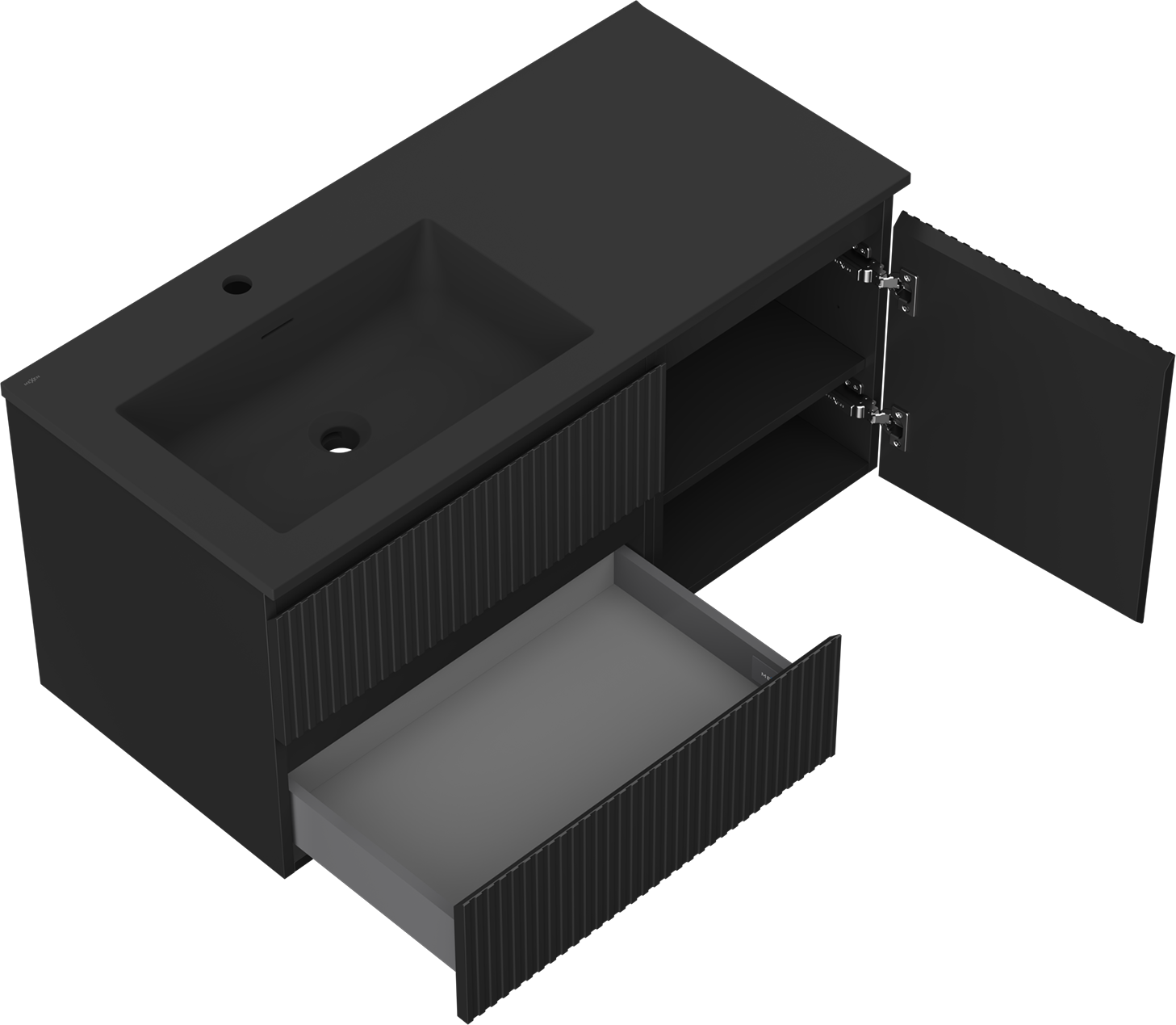 Výřez v zásuvce je navržen tak, aby pojmul sifon, který je nezbytný v instalacích umyvadlových. Díky tomu může být nábytek plně funkčně namontován, aniž by bylo nutné vzdát se prostoru v zásuvce ve prospěch instalace.