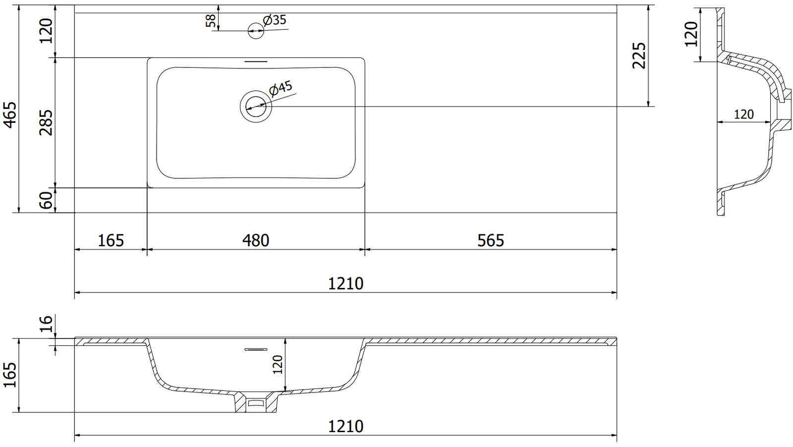 Umyvadlo má otvor, ve kterém lze namontovat baterii. Umožňuje to ušetřit cenný prostor v koupelně a zvýraznit její estetiku. Toto řešení také usnadňuje udržování čistoty kolem umyvadla.