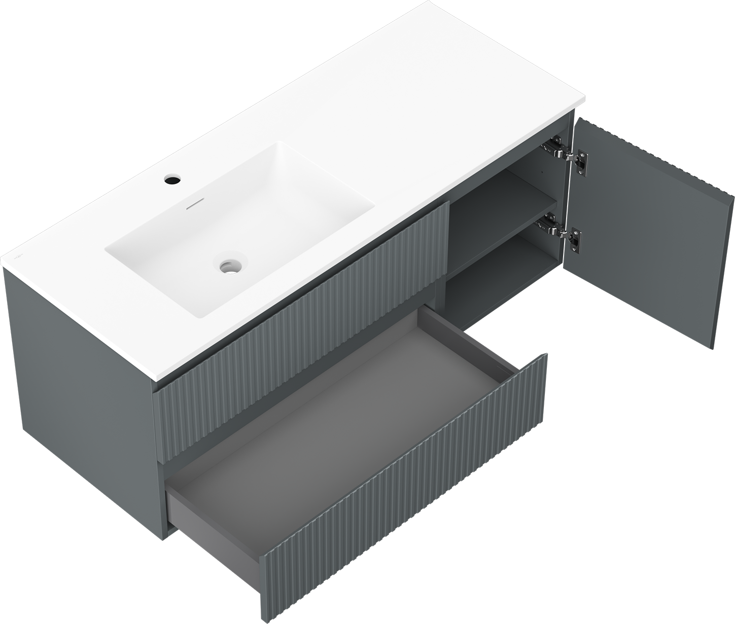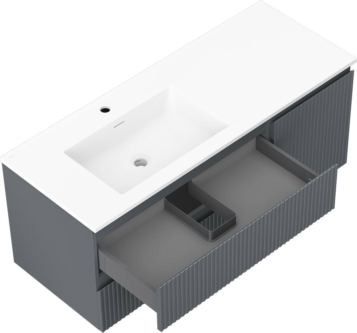Výřez v zásuvce je navržen tak, aby pojmul sifon, který je nezbytný v instalacích umyvadlových. Díky tomu může být nábytek plně funkčně namontován, aniž by bylo nutné vzdát se prostoru v zásuvce ve prospěch instalace.